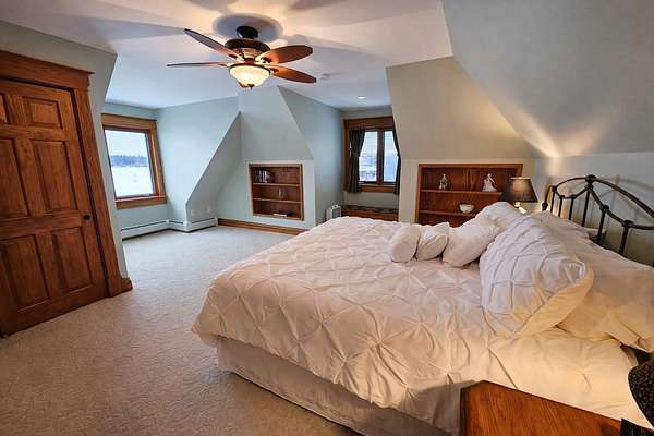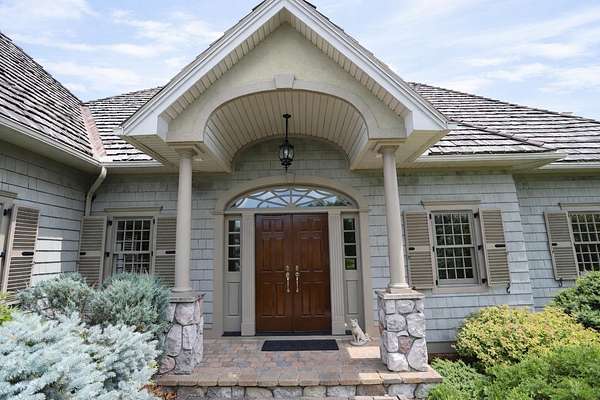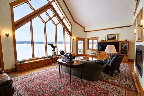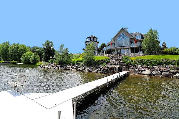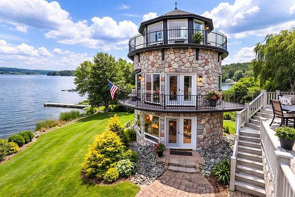 Magnificent lakefront retreat on beautiful Lake Memphremagog in Northern Vermont, offering 10+ private acres of manicured grounds and 271 feet of shoreline with sweeping panoramic views across one of Vermont’s most prestigious international lakes into Canada. This custom-designed and expertly crafted home features over 5,600 square feet of finished living space on three levels (floorplan sketches on file), including 4 bedrooms and 3.5 baths, thoughtfully designed for both everyday comfort and exceptional entertaining. Built with uncompromising attention to detail, the residence showcases high-end, top-quality finishes, premium materials, and superior craftsmanship throughout. The main level offers a grand living area overlooking the water, a gourmet kitchen, radiant heat, central air, and elegant architectural details. The walkout lower level is ideal for gatherings with a spacious billiard area, family room, full kitchen, and private home theater. A truly one-of-a-kind three-story lighthouse guest suite provides 360-degree views and wraparound decks, delivering an unforgettable guest experience. Additional amenities include an attached two-car garage and a detached two-story storage garage. Custom stone walkways lead to a lakeside patio and private docks, perfect for boating, swimming, and fishing. Enjoy breathtaking sunrises, peaceful surroundings, and an extraordinary blend of luxury, privacy, and recreation in this exceptional lakefront property. This is a rare opportunity to own one of Lake Memphremagog’s most distinguished and beautifully crafted homes, this exceptional offering stands among the lake’s premier estates and delivers extraordinary quality, privacy, lifestyle, and remarkable value for all that it includes.