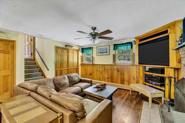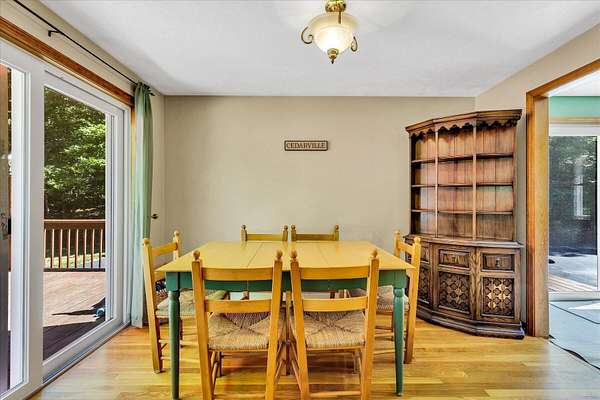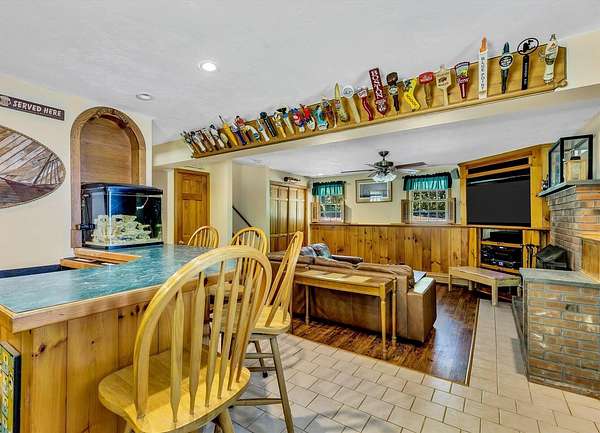 Set on 1.75 acres, this spacious split-level offers three bedrooms and two full baths with a versatile layout. The sunken living room features cathedral ceilings, hardwood floors, built-ins, and an abundance of natural light. The kitchen and dining area flow seamlessly to a large wrap-around deck with lots of privacy and a charming farmer's porch - perfect for entertaining or enjoying quiet mornings. The lower-level walk-out features a generous great room with a fireplace and wet bar, a dedicated laundry room, a home office, a media room, and a recently updated bathroom with tiled shower (2020). Additional highlights include central air conditioning, irrigations, a newer roof (installed in 2022), a newer boiler, a front door, and a freshly paved driveway. With plenty of indoor and outdoor space, this home combines comfort, updates, and character in a beautiful natural setting. Don't miss out on this opportunity to enhance this home and make it your own!