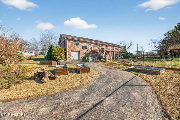 Peaceful country living on 5 beautiful acres in Tennessee! This 3-bedroom, 3 bathroom home features a welcoming front porch with mountain views and a back deck perfect for enjoying beautiful sunsets. The scenic property includes a pond and open land ideal for gardening or hobby farming. Improvements include a greenhouse (high-tunnel hoop house) workshop building, one-car garage, and carport. Large laundry room and living room with a brick fireplace with gas logs. This home has lots of room both upstairs and in the basement and excellent storage and workspace. Enjoy quiet rural living with low property taxes of only $820.33 per year. A great opportunity for those seeking space, views, and a country lifestyle in Tennessee, plus the benefits of high-speed fiber internet, public water and the shopping and conveniences of Crossville, TN. HVAC 9 years old, Roof 8 years old, Water heater 8 years old. Septic pumped in 2021. Call today to schedule a showing! *Buyer to verify all information & measurements before making an informed offer*