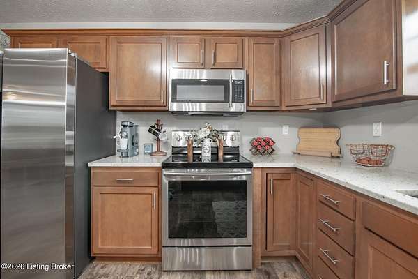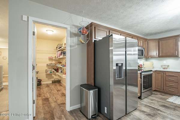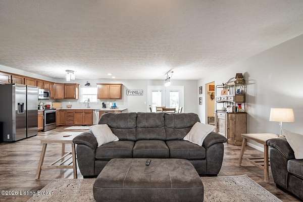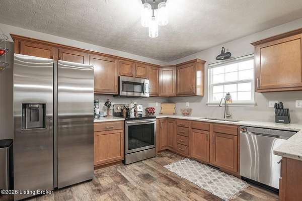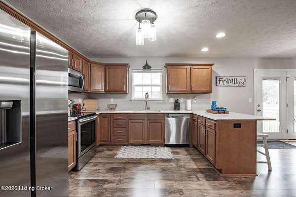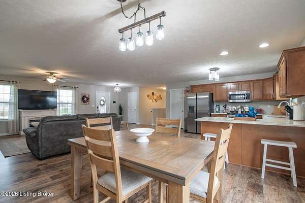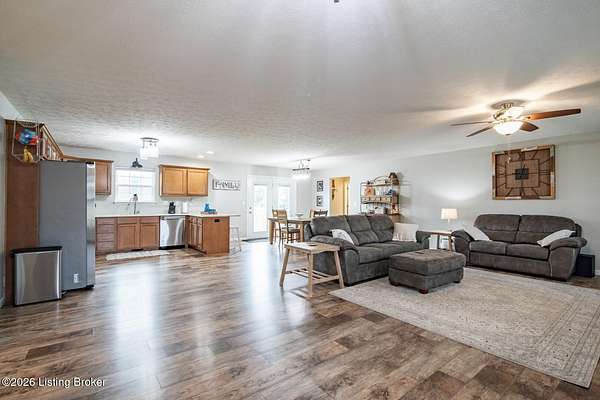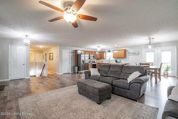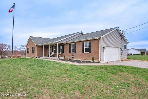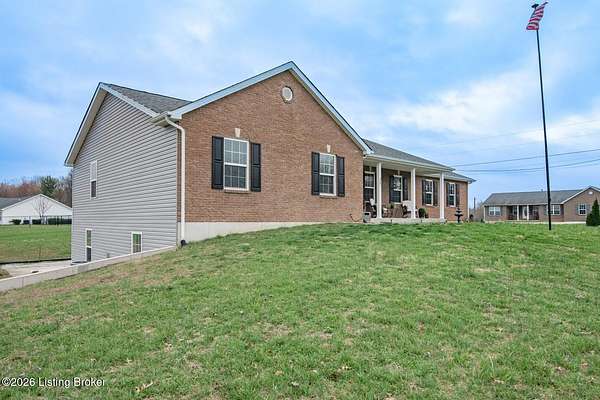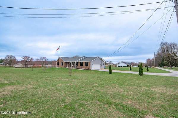 Spacious 4 bedroom, 3 1/2 bath home with a finished walk-out basement located less than 10 minutes from Ft. Knox and in the Meade County School District. This well-maintained home offers an open floor plan with a large living area that flows into the kitchen featuring stainless steel appliances, granite countertops, & ample cabinet space with a huge walk in pantry, perfect for everyday living & entertaining. The finished basement expands the living space with a rec room, custom bar area, and a private 4th bedroom, making it ideal for guests, entertaining, or a separate living space. Another rare bonus: no neighborhood restrictions, giving you flexibility and freedom many subdivisions don't allow. Want to bring your boat, camper, or even build a pole barn? Yes, you can do that here. Conveniently located near Ft. Knox, Brandenburg, Elizabethtown & Louisville, this property combines space, comfort, and location in one great package.