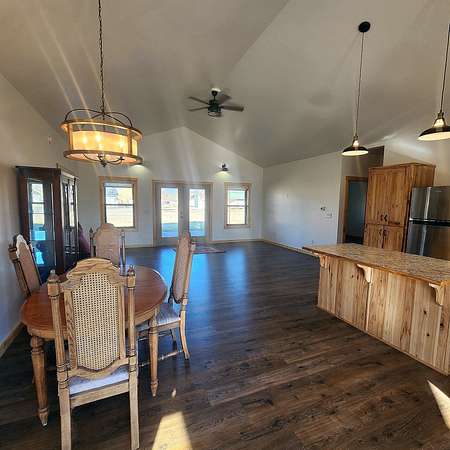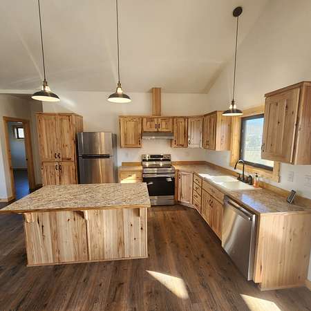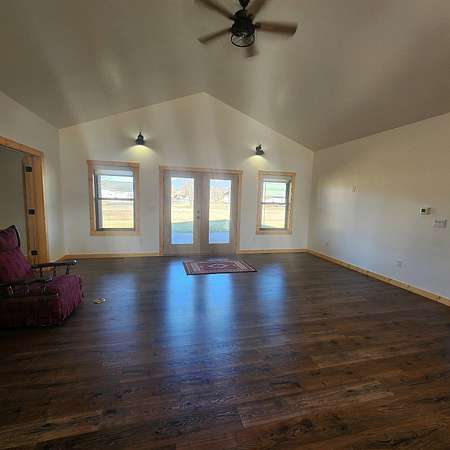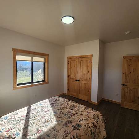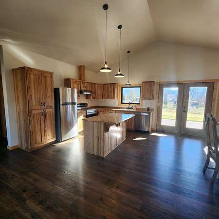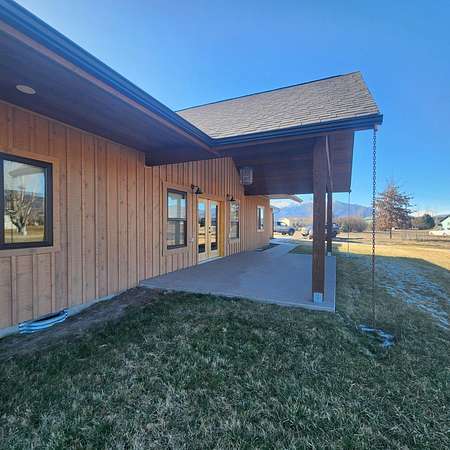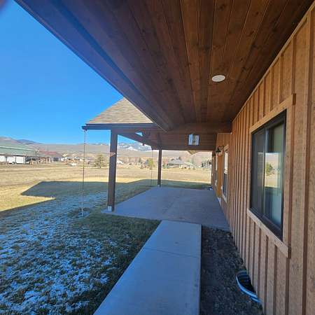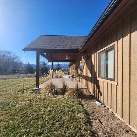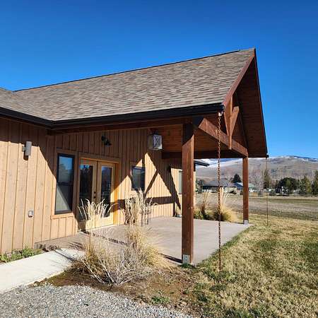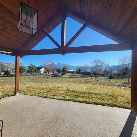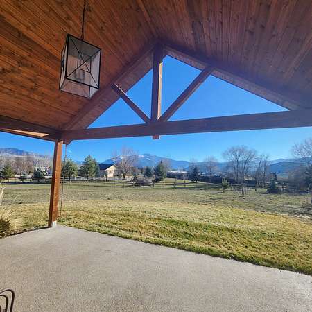 Beautiful, one of a kind comfortable home conveniently located just a short drive to town. The 2.69 acres features mature trees and lush lawn while allowing plenty of room for future improvements such as a shop, greenhouse and gardens. Two covered porches of nearly 300 square feet each featuring exposed aggregate surface coatings with thick beams and T / G woodwork in the cathedral peaks overhead. The wooden board and batten siding with cedar shake gable end detail lends timeless style to the exterior. Inside finds soaring ceilings in the main living area with 9 foot ceilings in the remainder of the home. Luxury vinyl plank makes upkeep easy and the look appealing. The thoughtfully crafted and functional kitchen features solid hickory with soft close doors and drawers. Transom windows in the guest bedrooms frame the gorgeous mountain views. French doors galore! Two sets leading to the covered porches lends to the light and airy feel throughout. List of house extras: Custom fitted blinds Anderson windows Ceiling wired wifi Wired for security cameras with central dock station in the garage Outdoor hot water spigot 86 gal. pressure tank Stainless steel 'slop'/laundry sink Luxury vinyl plank flooring High efficiency propane furnace Central Air conditioning Level entry/wheel chair accessible Oversized insulated, tape & textured garage Mature landscaping New post and rail fence on SE property side 500 gal. lease propane tank Propane stubbed on foundation wall for future outdoor BBQ hook up Insulated foundation wall and rim joist Easy open and close galvanized vents for crawl space Upgraded 'quiet close' garage door opener