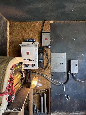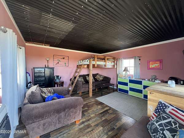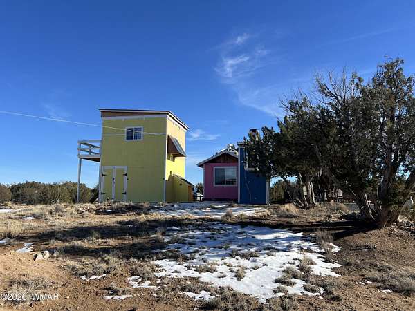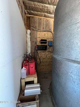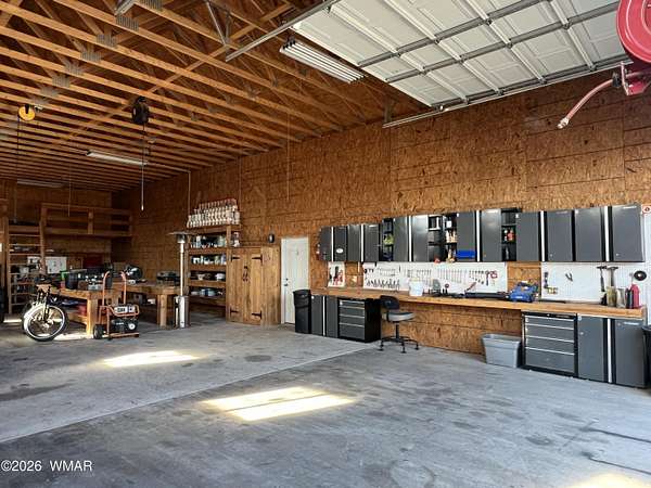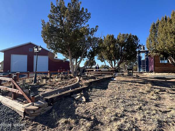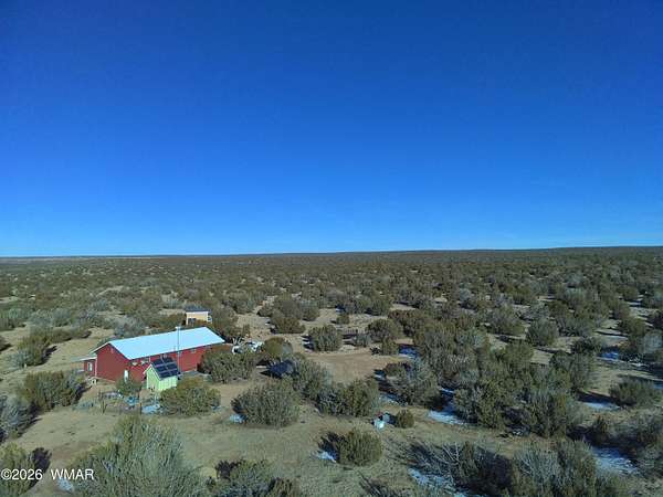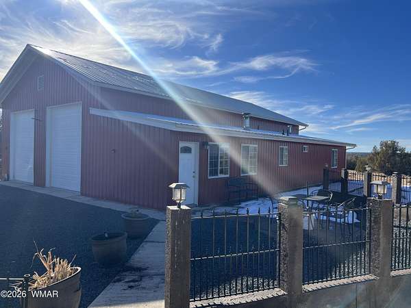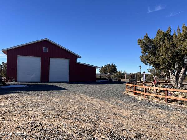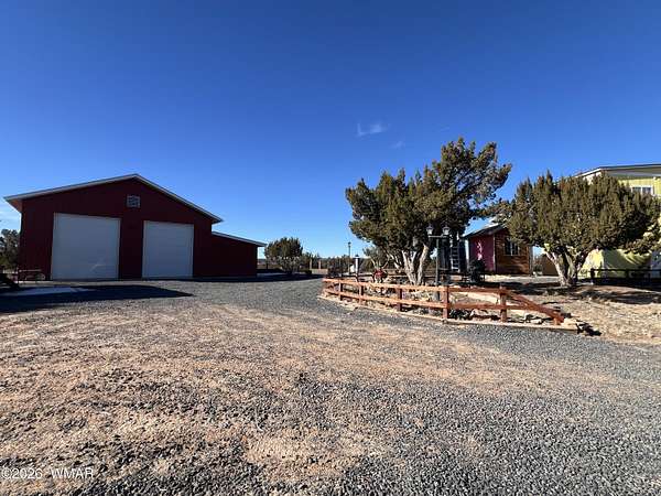 Escape to wide-open skies and true Arizona freedom with this remote, large-acreage home just outside Saint Johns. Set on an impressive 80-acre AG-zoned parcel, this property is ready for the lifestyle you've been dreaming of-space for animals, equipment, and endless possibilities. Enjoy the confidence of an owned solar system and a private well, plus the comfort of an on-demand water heater for year-round efficiency. Need room for toys, tools, or a workshop? You've got a massive 6-car garage and additional buildings for storage, projects, or expansion. Whether you're looking for self-sufficient living, a homestead, or a ranch-style retreat, this one checks all the boxes. Remote living at its finest! Easily accessed location just 40 minutes south of I-40 and only 4 miles of dirt road. Private well with 2000 gallon water storage tank housed in it's own building out of the weather and it's own solar panel/batteries. Solar system for the home features more than 18 panels, 3 Ion Lithium Batteries and Perkins slow turning diesel backup Generator for more than enough power for full time residents. The home features 720 square feet of finished living space within 44' x 60' main structure that includes the current 6 car garage & Loft. The entire home is insulated with R-30 in the ceiling and exterior walls that aids in economical temperature control. There is an electric heater in the Living room in addition to the Pellet Stove. An Electric wall unit in hallway and Propane wall heater in bedroom. The recently upgraded solar system and over-sized septic provide the infrastructure already in place to convert a portion of the garage into additional living space. Additional Buildings are the 16' x 16' well house with a room/guest space and an unfinished 12' x 12' luxury "outhouse" with free standing tub and skylight or make it into your own personal sauna.