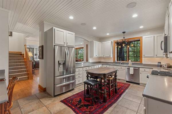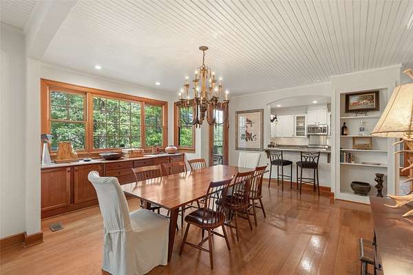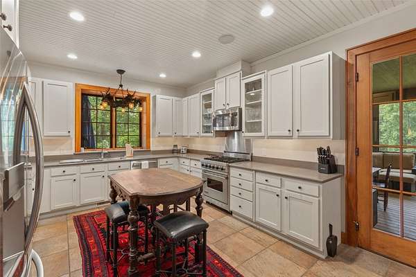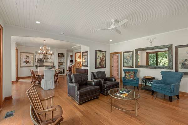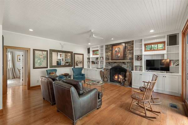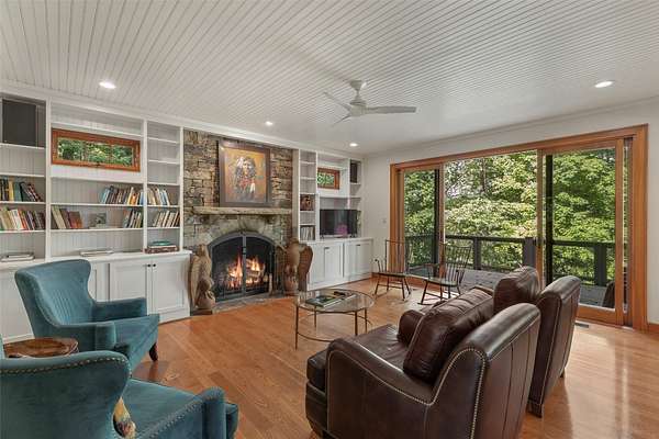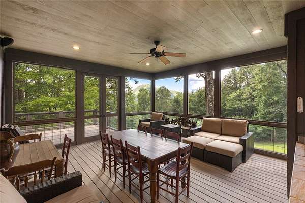 Located in the heart of Cashiers, this 6-bedroom, 6.5-bath home sits on 2.13 acres of private, well-maintained grounds with views of Chimneytop and Rock Mountain. The gently sloping property offers ample lawn space and room to add another home or guest house, making it an excellent option for a family compound. The main residence features a large primary en-suite with its own fireplace and mountain views, plus four additional guest suites. The main level features a large kitchen including a walk-in pantry, a dining area and a living room centered on a stone fireplace. Outdoor living is highlighted by a large screened porch for dining and conversation, along with open decking for gatherings. The lower level provides a large family room, wet bar, and second laundry for ease of entertaining and hosting. A private guest apartment is located above the two-car garage. This property offers the perfect combination of space, views, and convenience, just minutes from Cashiers dining, shopping, and in-town amenities. This home also is a qualifying purchase for applying for a High Hampton Membership. Buyers will be subject to go through membership approval process in order to purchase the membership with the home.