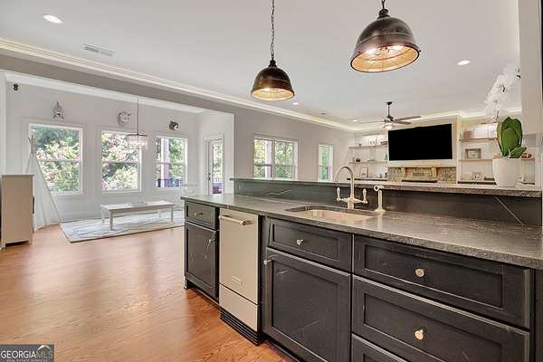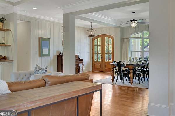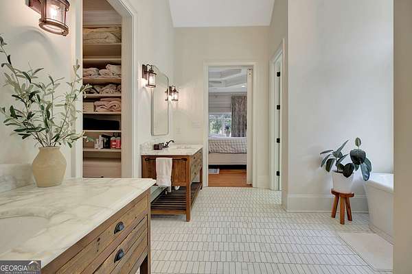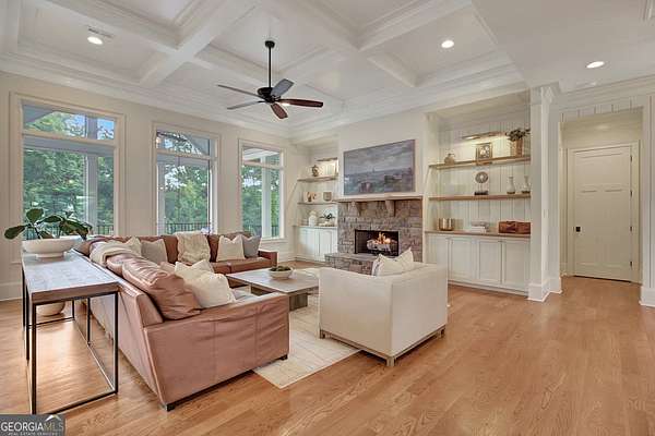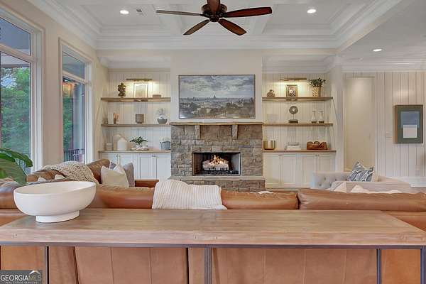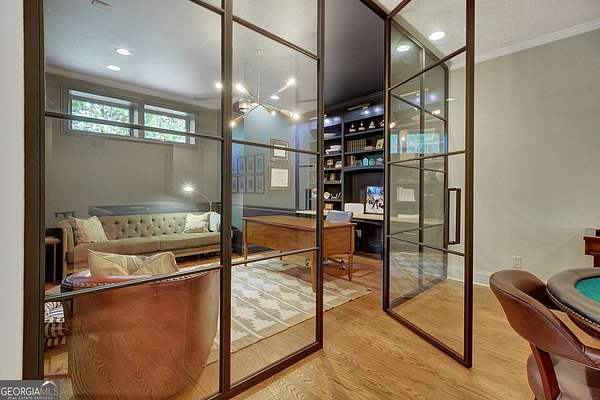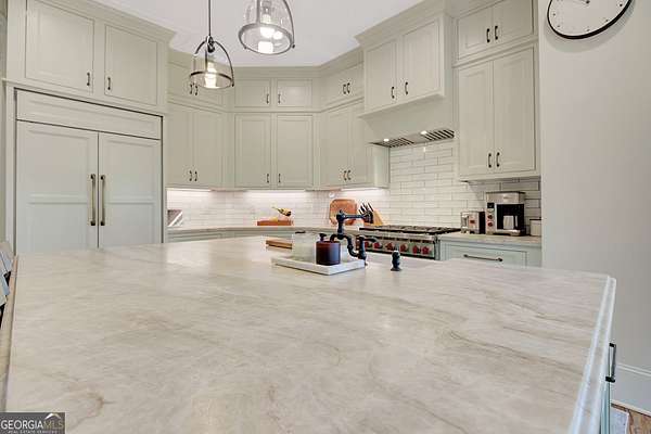 Tucked within highly sought-after Arbor Springs neighborhood, and located on two lots with over 4 acres on a private cul-de-sac, this impeccably maintained estate offers an extraordinary blend of refined elegance and modern sophistication. Featuring 6 bedrooms, 5 full and 2 half baths, this exceptional home balances grandeur with everyday comfort. Backing up to the community nature park and stream, this home is surrounded by breathtaking views of mature trees and greenery. The main level features an elegant primary suite, thoughtfully designed with a spa-inspired bathroom and expansive walk-in closet. Two additional bedrooms, each with private en-suite baths, are located on the main level. At the heart of the home lies a timeless chef's kitchen, complete with a large center island, Sub-Zero refrigerator, Wolf gas range, leathered granite surfaces, custom cabinetry, and walk-in pantry. The open-concept floor plan is perfect for effortless entertaining, and the living room boasts architectural grandeur with new custom built-ins, stunning coffered ceilings, shiplap walls, and a stacked stone gas fireplace. Upstairs, discover a loft and additional bedroom with en-suite bath and double sink. The newly renovated terrace level nearly doubles your living space with new hardwood floors, a large open concept living room with gas burning fireplace, billiards area, and a stunning custom bar featuring beer and wine refrigerators, an ice maker, and custom built-ins. A dedicated executive office with a custom Italian glass wall partition provides a sleek, professional office retreat. Two additional bedrooms, both with oversized closets, are located in the terrace guest wing along with a full custom bathroom. Oversized gym with sport flooring and infrared sauna complete the terrace level. Additional details and luxurious finishes throughout include site-stained hardwood floors, 8" baseboard trim, double crown molding, custom 3-panel solid wood doors, and recessed lighting. High-efficiency systems include tankless water heaters, spray foam insulation, and premium HVAC units. Architectural details such as all-wood Pella windows, Hardy plank siding, cedar decking, flagstone pavers, bead board porch ceilings, and covered porches with swing elevate the exterior's timeless charm. Pool plan designed by J&M has already been approved by Arbor Springs HOA. This is a rare opportunity to own a perfect showpiece that combines refined design, functional luxury, and the serene beauty of its natural surroundings.Residents benefit from Arbor Springs' exceptional amenities, including a golf course, pool, tennis courts, and more. Please provide pre-approval or proof of funds prior to showing approval.