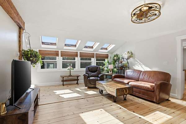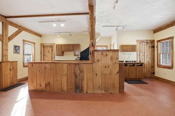 A rare find! Lovingly updated and remodeled historic property offering one-level living with additional guest quarters upstairs. Gorgeous wide-pine flooring, an open, light-filled kitchen, and beautiful architectural details throughout. A reclaimed stained-glass church door creates a stunning entrance to the primary bedroom. The attached two-bedroom in-law provides flexibility for rental income, extended family, or multi-generational living. Car enthusiasts and hobbyists will appreciate the impressive 24' x 40' four-car garage with second-floor storage and steel beam construction for wide-open space. The 24' x 36' post and beam barn (built in 2003) is ideal for a business, workshop, or creative studio, featuring radiant heat, a half bath, its own entrance from Bohannon Bridge Road, and ample parking. Set on two picturesque acres with mature plantings, stone walls, and beautiful perennials including wisteria, crape myrtle, hydrangea, and roses. A truly special and versatile property.