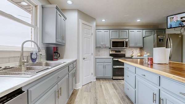 - Dishwasher, Electric Oven, Microwave, Refrigerator, Stainless Steel Appliance(s)
