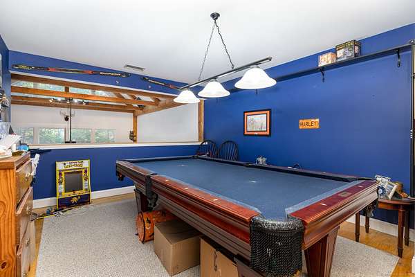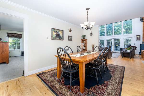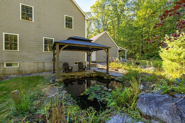 You'll fall in love with this stunning custom-built Colonial nestled on over 4 private acres! This beautifully designed home features a gourmet country kitchen with rich wood cabinetry, a Bbar, and a custom coffee/wine bar-all open to a spacious dining room with wide plank floors. The DR flows seamlessly into a breathtaking LR with a soaring beamed ceiling, floor-to-ceiling windows, and a striking stone fireplace with wood stove insert. The first-floor primary suite offers a full bath and walk-in closet, while a convenient half bath, mudroom, and laundry area complete the main level. Upstairs, a loft overlooks the stunning LR below and leads to two oversized BRs, a full bath, and a dedicated office space that could easily serve as a 4th BR. Enjoy total privacy outdoors with multiple entertaining areas, including a covered porch area, a wraparound composite deck, overlooking a high bread above-ground pool. The stone patio features a cozy firepit and seating, a serene koi pond with pergola. Additional amenities include a shed, chicken coop, greenhouse, and a 3-car tandem garage with carport. A true hidden gem offering peace, privacy, and exceptional living-don't miss your chance to call this incredible property home!