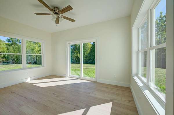 Custom Built Ranch Style Home in a Great Location in one of Windsor's Best New Subdivisions! 9 foot ceilings in Home and 9 foot 6 inch ceilings in Garage! Luxury Vinyl Plank Flooring throughout, Solid Core Doors, Granite counters in Kitchen with beautiful cabinets offering 39 inch uppers! Open concept Living & Kitchen with Pantry. Kitchen set up for electric or gas Range. A Beautiful Sunroom/Dining Room off the back with a sliding glass door to the back yard! Master Suite offering a Master Bath with double sink vanity & Walk-In closet. Additional Bathroom across the home by the other two Bedrooms! Laundry Room with room for storage! Radiant heat throughout including the garage! Garage is also insulated, sheet rocked and trimmed out. Nice large back yard with privacy! Underground power to home! Beautifully constructed private dead end road with rip rap and top grade finish!