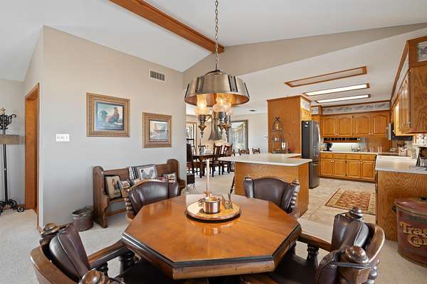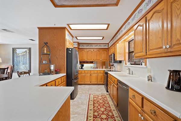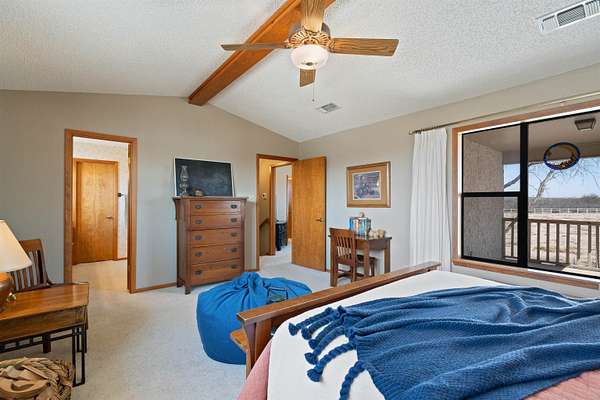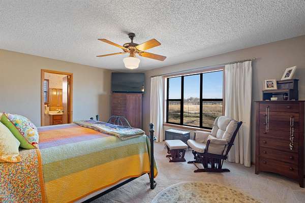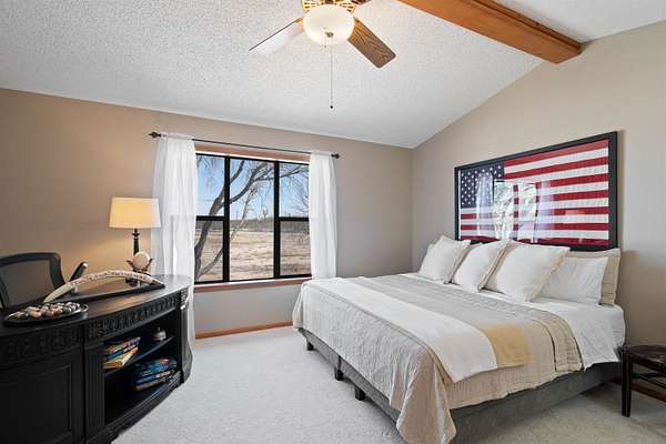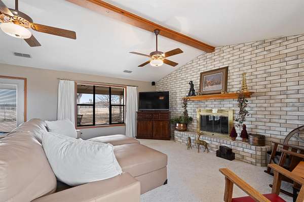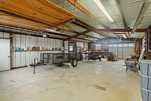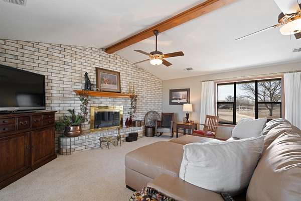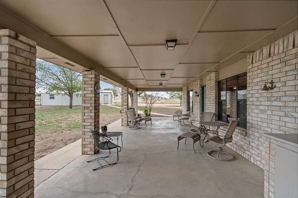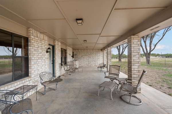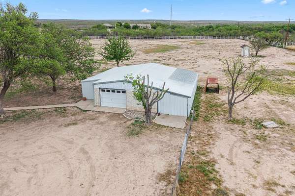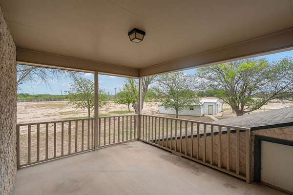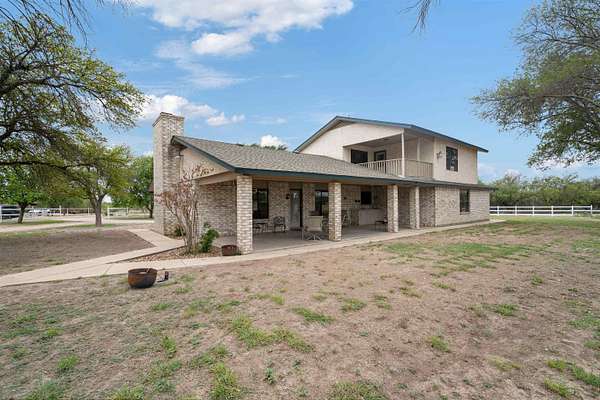 Spanning over 2,600 square feet, this home offers generous living space paired with an oversized back patio designed for relaxing or entertaining. A second-story balcony creates the perfect setting to enjoy peaceful sunrises and sweeping views of the surrounding acreage. Set on 5.05 serene acres, the property provides space to spread out, privacy, and room to truly breathe. Each of the three bedrooms features a private ensuite bath, while cathedral ceilings and a warm brick fireplace create an inviting, open living area. The kitchen is designed for gathering, showcasing black stainless-steel appliances and ample workspace. An oversized laundry room adds extra storage flexibility, and outside you'll find a two-car garage, a covered porte-cochere, and a detached workshop with overhead doors -- ideal for hobbies, projects, or additional storage. Listing agent is related to Seller. Seller is a licensed Texas Broker.