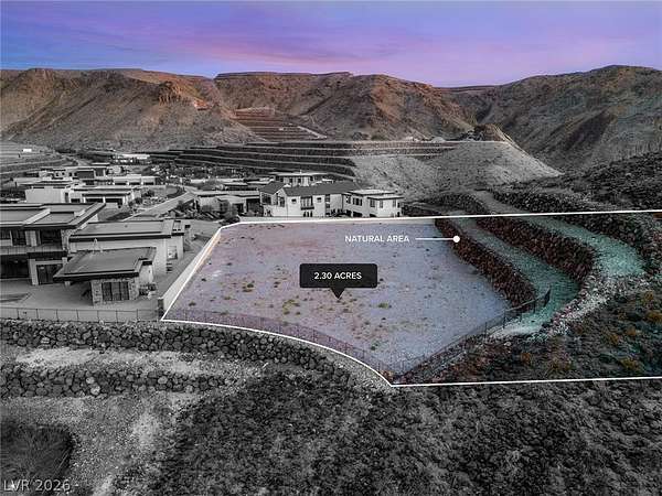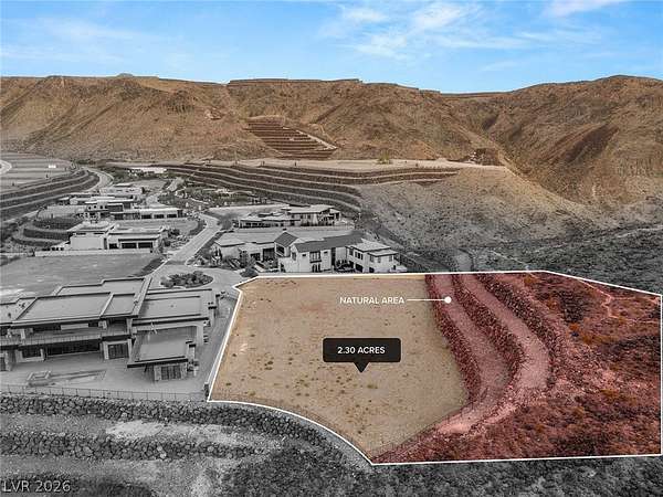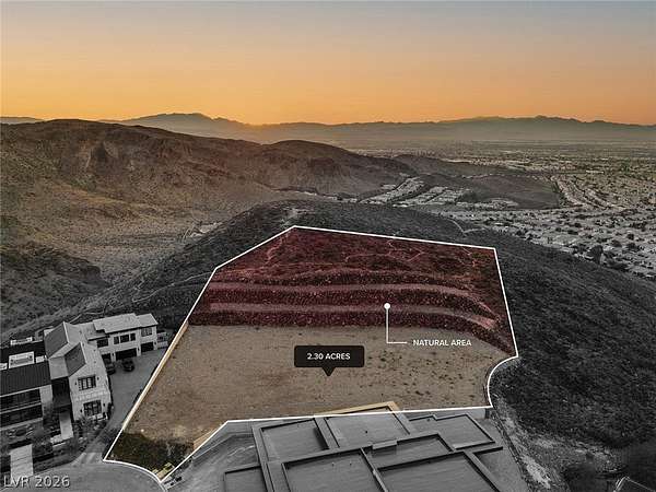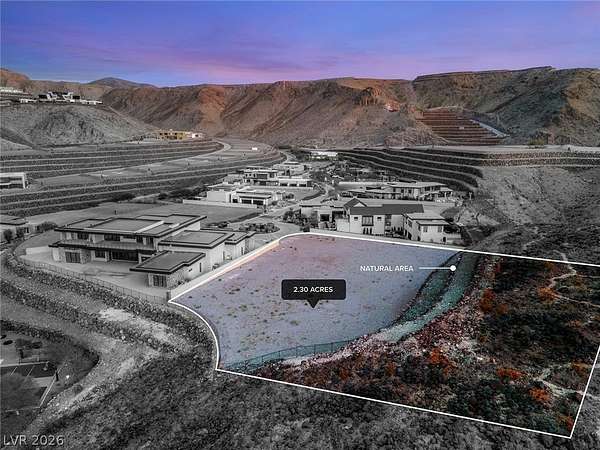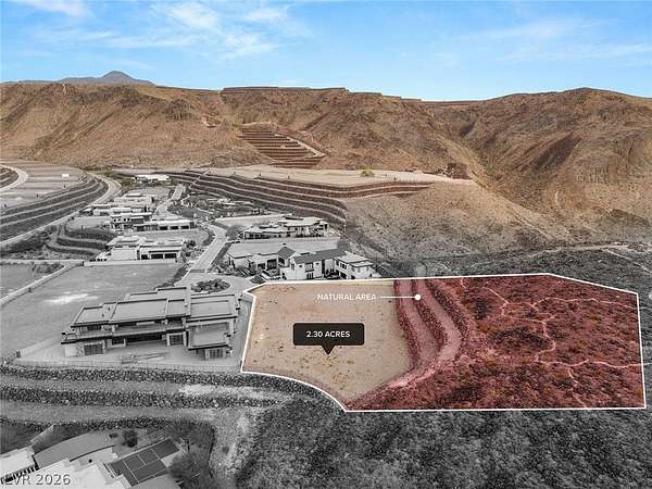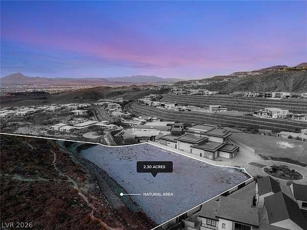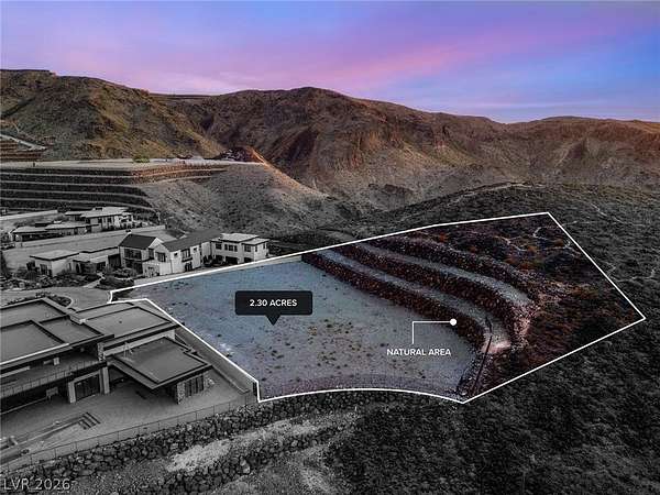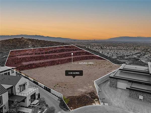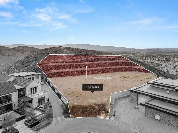 Commanding a premier position within Ascaya, this exceptional 2.30-acre cul-de-sac corner homesite at 25 Sanctuary Peak offers a rare opportunity to create a signature desert estate. Elevated above the valley, it captures sweeping views of the Las Vegas Strip, Red Rock Canyon, Sunrise Mountain, and shimmering city lights. Privately situated with space for a grand gated approach, this expansive parcel blends seclusion with convenience near the guard gate and community amenities. Development-ready with utilities in place and approved for a single- or two-story residence. Ascaya is renowned for its striking desert contemporary architecture, signature stone walls, and elevated lifestyle, featuring a five-star clubhouse, resort-style pool, fitness center, sports courts, park, and trails—all within a guard-gated community with 24/7 security. Located in Henderson, one of the safest cities in the U.S.