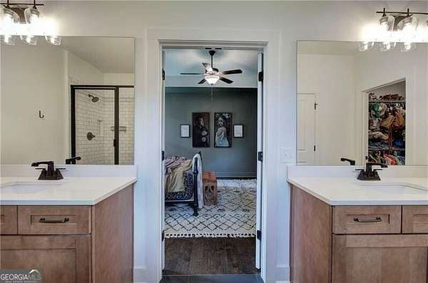Come Home to Stratford! Step into a lifestyle of comfort and elegance with this stunning 4-bedroom, 3.5-bath Ranch Farmhouse, gracefully situated on 3 lush acres in Stratford Subdivision. From the moment you arrive, this home makes a bold statement welcoming you with a classic rocking chair front porch and timeless white brick exterior, all set in a serene cul-de-sac lot. Grand double doors open into a breathtaking interior where rich hardwood floors, designer lighting, and thoughtful architectural details create a warm yet sophisticated ambiance. The expansive Great Room is brilliant anchored by a magnificent brick fireplace that sets the stage for cozy evenings or stylish entertaining. A true showpiece, the gourmet kitchen is marked for true distinction as it exudes custom cabinetry, sleek quartz countertops, and top-of-the-line black stainless appliances which blend functionality with flair. A striking, oversized island with space for barstools adds an inviting touch, while the immense walk-in pantry offers unmatched storage, microwave sets perfectly inside creating space. Enjoy your morning coffee or casual meals in the light-filled breakfast area, perfectly positioned to capture peaceful and tranquil views of the massive landscape. The luxurious owner's suite is your personal sanctuary featuring a stunning trey ceiling, spa-inspired bath with double vanities, a spacious walk-in subway-tiled shower with dual shower heads, and a generous walk-in closet designed for effortless living. On the opposite side of the home, three additional bedrooms and two beautifully appointed baths ensure privacy and comfort for family or guests. Downstairs, the sprawling unfinished basement with endless possibilities awaits! Create a custom home theater, private gym or the ultimate entertainment space, complete with a reinforced concrete storm room. This exceptional property blends timeless style with modern convenience in a peaceful serene setting. Come home to where elegance, charm, and detail meet peace, tranquility, and beauty. Come home to Stratford! BONUS: *7-Star 1yr Home Warranty Included!* Per Public record total square footage includes unfinished basement. Areas are broken out to show finished and unfinished areas.
