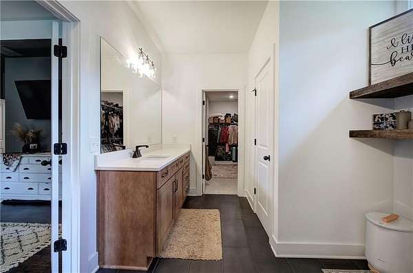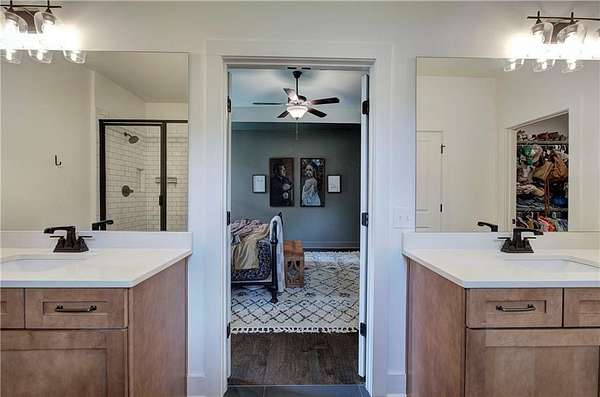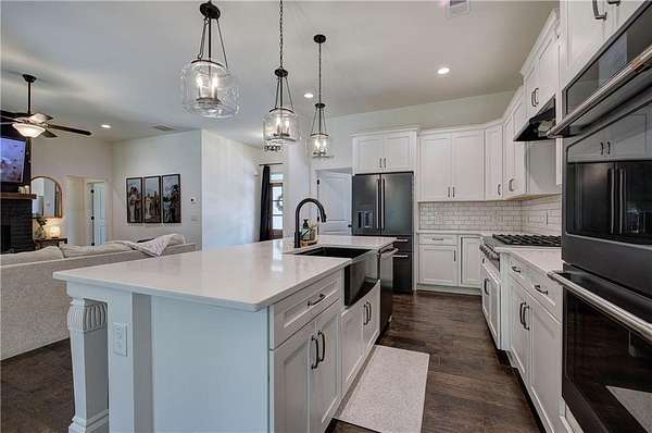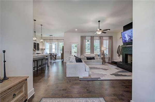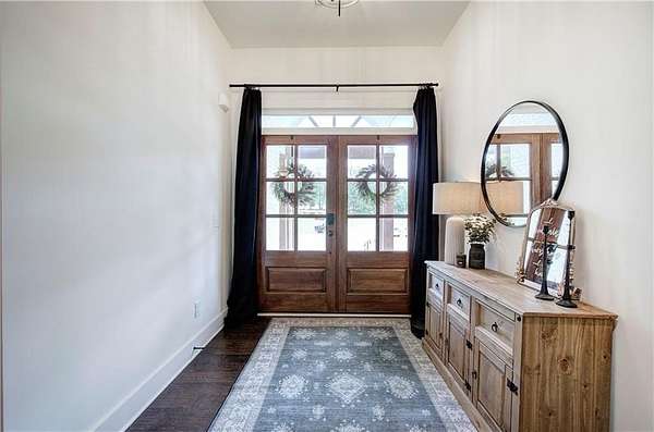 Come Home to Stratford! Step into a lifestyle of comfort and elegance with this stunning 4-bedroom, 3.5-bath Ranch Farmhouse, gracefully situated on 3 lush acres in Stratford Subdivision. From the moment you arrive, this home makes a bold statement welcoming you with a classic rocking chair front porch and timeless white brick exterior, all set in a serene cul-de-sac lot. Grand double doors open into a breathtaking interior where rich hardwood floors, designer lighting, and thoughtful architectural details create a warm yet sophisticated ambiance. The expansive Great Room is brilliant anchored by a magnificent brick fireplace that sets the stage for cozy evenings or stylish entertaining. A true showpiece, the gourmet kitchen is marked for true distinction as it exudes custom cabinetry, sleek quartz countertops, and top-of-the-line black stainless appliances which blend functionality with flair. A striking, oversized island with space for barstools adds an inviting touch, while the immense walk-in pantry offers unmatched storage, microwave sets comfortable inside to save space. Enjoy your morning coffee or casual meals in the light-filled breakfast area, perfectly positioned to capture peaceful and tranquil views of the massive landscape. The luxurious owner's suite is your personal sanctuary featuring a stunning trey ceiling, spa-inspired bath with double vanities, a spacious walk-in subway-tiled shower with dual shower heads, and a generous walk-in closet designed for effortless living. On the opposite side of the home, three additional bedrooms and two beautifully appointed baths ensure privacy and comfort for family or guests. Downstairs, the sprawling unfinished basement with endless possibilities awaits! Create a custom home theater, private gym or the ultimate entertainment space, complete with a reinforced concrete storm room. This exceptional property blends timeless style with modern convenience in a peaceful serene setting. Come home to where elegance, charm, and detail meet peace, tranquility, and beauty. Come home to Stratford! *BONUS: 7-STAR 1-YEAR HOME WARRANTY INCLUDED!*Per Public record total square footage includes unfinished basement. Areas are broken out to show finished and unfinished areas.