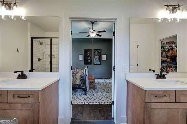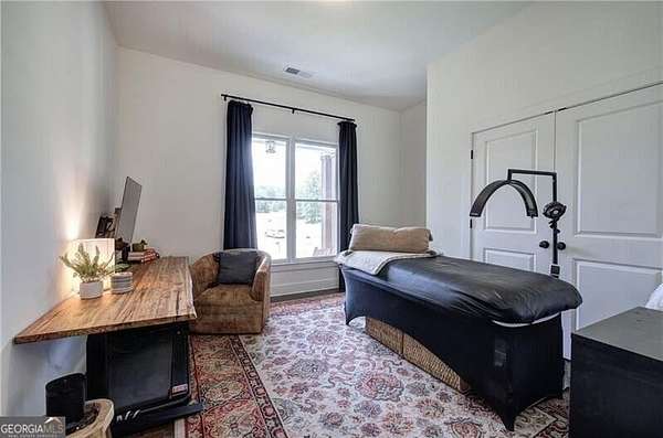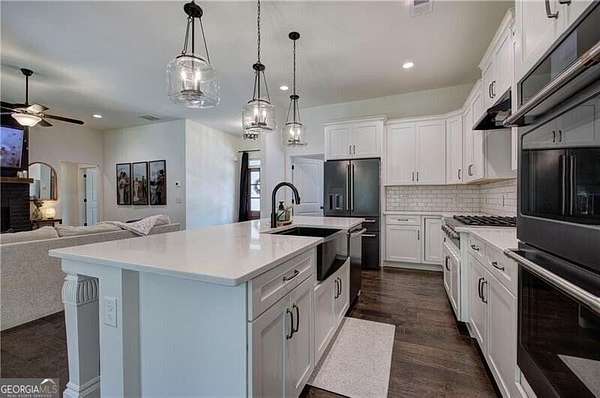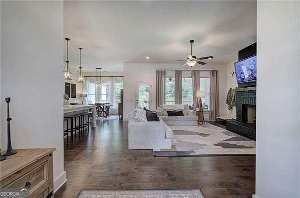 An extraordinary opportunity to own a lifestyle of comfort defined by elegance, character and beauty. This stunning 4-bedroom, 3.5-bath Ranch Farmhouse, gracefully situated on 3 acres in Stratford Subdivision offers all that and more. From the moment you arrive, this home makes a captivating bold statement with a classic rocking chair front porch and beautiful eye catching white exterior, boasting in the center of a serene cul-de-sac lot. Grand double doors open into a breathtaking interior where rich hardwood floors, designer lighting, and thoughtful architectural details create a warm yet sophisticated ambiance. The expansive Great Room is brilliant anchored by a magnificent brick fireplace that sets just the right cadence for cozy evenings or stylish entertaining. A true showpiece, the kitchen is marked for true distinction as it exudes custom cabinetry, sleek quartz countertops, and top-of-the-line black stainless appliances which blend functionality with flair. A striking, oversized island with space for barstools adds an inviting touch, while the immense walk-in pantry offers unmatched storage, while allowing the microwave to set comfortable inside to save space. Enjoy your morning coffee or casual meals in the light-filled breakfast area, perfectly positioned to capture peaceful and tranquil views of the massive landscape. The luxurious owner's suite is your personal haven featuring a stunning trey ceiling, spa-inspired bath with double vanities, a spacious walk-in subway-tiled shower with dual shower heads, and a generous walk-in closet designed for effortless living. On the opposite side of the home, three additional bedrooms and two beautifully appointed baths ensure privacy and comfort for family or guests. Downstairs, the sprawling unfinished basement with endless possibilities awaits! Create and customize your own home theater, private gym or the ultimate entertainment space, with added bonus a reinforced concrete storm room. This exceptional property blends timeless style with modern convenience in a peaceful serene setting. Welcome home where elegance, charm, and detail meet peace, tranquility, and beauty. *BONUS: 7-STAR 1-YEAR HOME WARRANTY INCLUDED!*