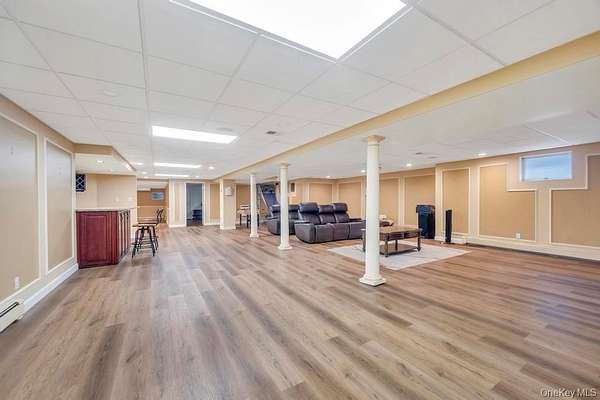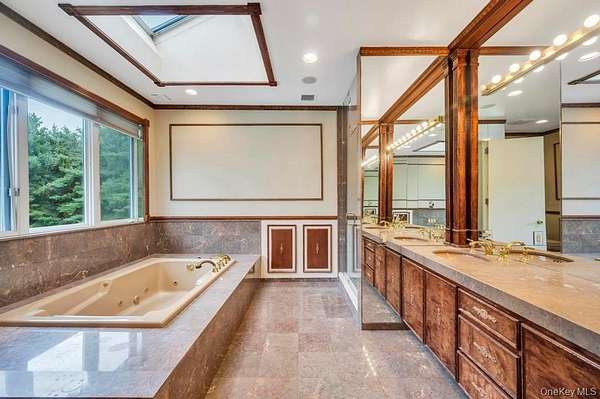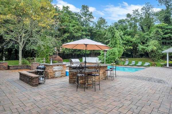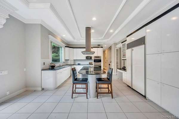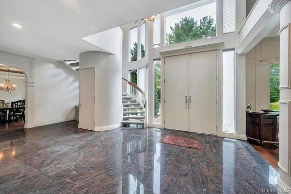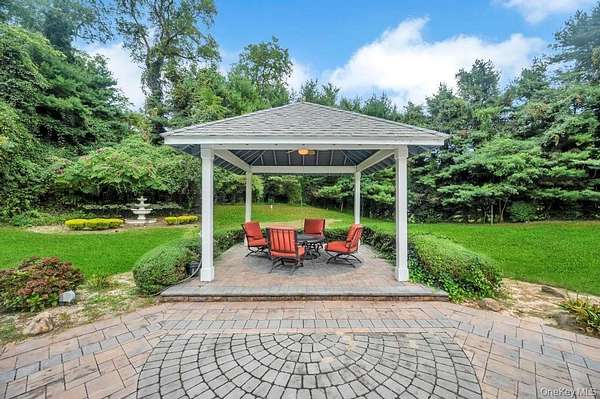 Welcome to this Magnificent Contemporary Center Hall Colonial in a Gated Community on 2 Acres of landscaped and Tree-lined Property. From the Huge 2 story Marble Foyer with Dramatic Staircase, you are invited into Spectacular Light-filled Spacious Rooms with beautiful Millwork, Detailed Tray Ceilings, Moldings and Marble, Tile and Hardwood Floors Though out. The Foyer flows openly into the Formal Living Room with 2 Story Ceiling and Family Room with Fireplace, and Slider Doors to the Rear Entranced of the House. The Elegant Banquet-sized Dining Room is exquisitely detailed with large Picture Windows and Service Door to the gourmet Kitchen Appointed with Custom Cabinetry, Granite Counters, Cook-top and seating Center Island and top of the line SS Appliances. The bright Breakfast Area has slider Doors to the fantastic patio overlooking a Solar heated in-ground Pool, Gazebo and Hot-Tub.in the expansive yard. The second Floor boasts the master suite with Tray Ceiling Hardwood Floors, Dressing Area with Custom Wardrobe and Vanity, His and Her Walk-in Closets and luxurious Master Bath. More living space is offered in the finished Lower Level with a recreation Room, Home Theater Wet Bar, Gameroom, TV Area, and Office. This stunning Home has convenience to Parks, Beach, Mooring Rights and all the North Shore has to offer. Simply sophisticated Elegance that is unsurpassed.