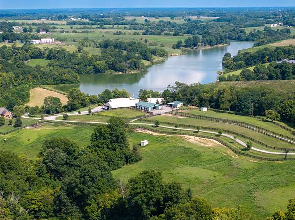 *Additional 5 acres just added for no additional cost! Now approximately 35 acres! * Truly one-of-a-kind property with endless possibilities! Lakefront farm and stables! 30 fenced acres (27 zoned agricultural and 3 residential). Property fronts 94-acre Boltz Lake, 2 miles off Dry Ridge exit. 35 minutes to Cincinnati, 45 mins to Lexington, and 5 miles from Ark Encounter. This property features: 2 bed 1 bath Barndominium built in 2025 with large unfinished loft for living area expansion, an adjoining classroom with 2 ADA bathrooms that could be easily turned into living space, a 75x200 horse arena with viewing area, low dust composite footing, 6 stalls, tack room, parking lot, outdoor pen, and an overhead sprinkler system, a 30x40 motor barn to store your boats and equipment, a stall barn with 6 more stalls and feed room plus an office with a half bath. There's also a picnic shelter overlooking the lake with an amazing view, a playground area, and a road leading to the fishing ramp at Boltz Lake, which is maintained by KY Fish and Wildlife. The property is currently used for therapeutic horseback riding program and riding stables, including boarding (Lovesome Stables) but there are endless business opportunities!