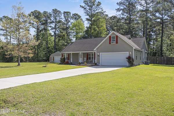 Country living meets convenience at 250 Brothers Lane--just minutes from Western Blvd. Situated on under 2 acres, this well-maintained 2-owner home offers 3 bedrooms, 2 full bathrooms, plus a versatile bonus room ideal for a home office, guest space, or flex use. Inside, you'll find a spacious open floor plan designed for both everyday living and entertaining. The large family room flows seamlessly into a well-appointed kitchen featuring a bar that comfortably seats six, brand new stainless steel appliances, and abundant cabinetry for exceptional storage. The dining area with durable LVP flooring easily accommodates an 8-10 person table. Additional highlights include a generously sized laundry room with ample space for various washer and dryer configurations, and a detached 750 sq ft wired workshop/garage--perfect for hobbies, storage, or workspace needs. Tucked away for privacy while still offering excellent accessibility, the home is approximately 10-15 minutes to Camp Lejeune and MCAS New River, 35-45 minutes to the beaches of Emerald Isle and North Topsail, and about 3-3.5 hours to the Outer Banks--giving you the flexibility to enjoy both everyday convenience and coastal living. This property offers the rare combination of space, functionality, and location--ideal for those seeking privacy without sacrificing proximity to town.