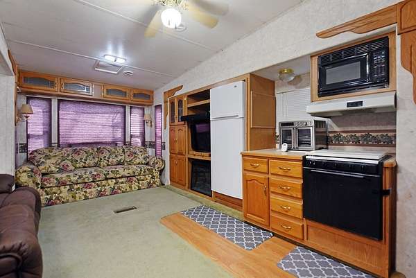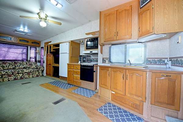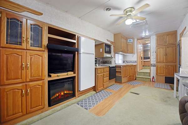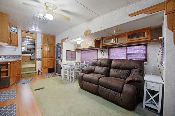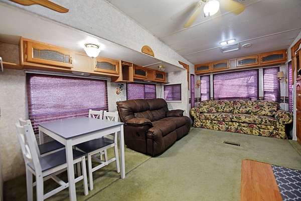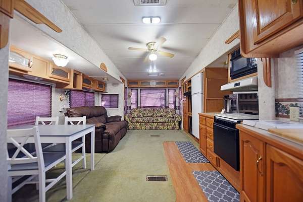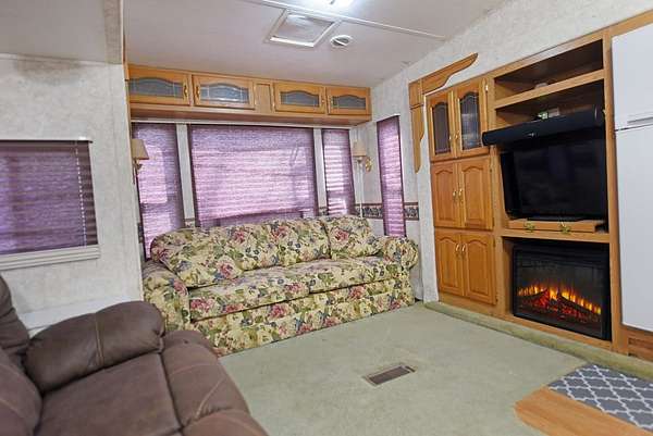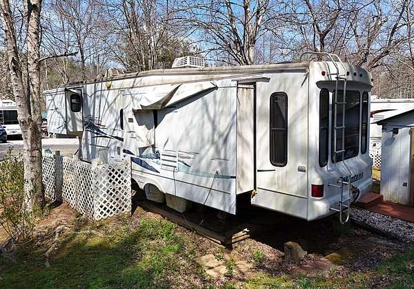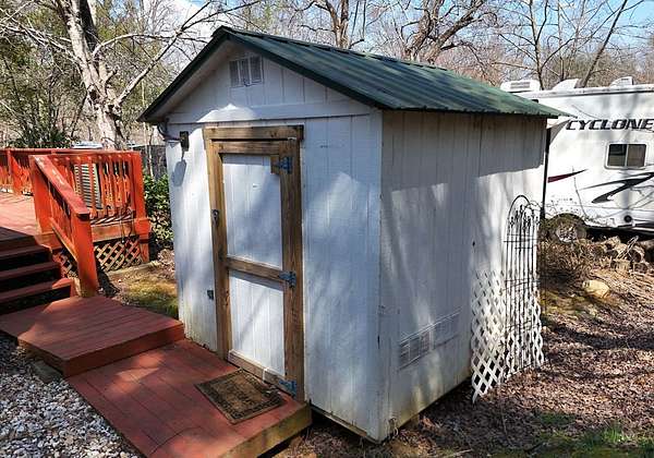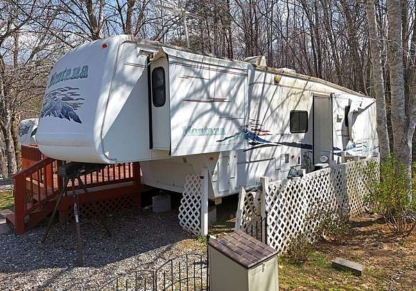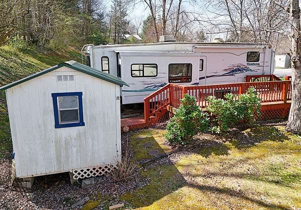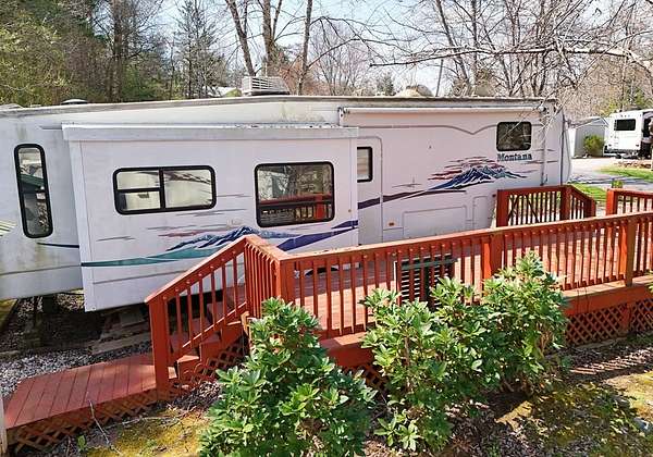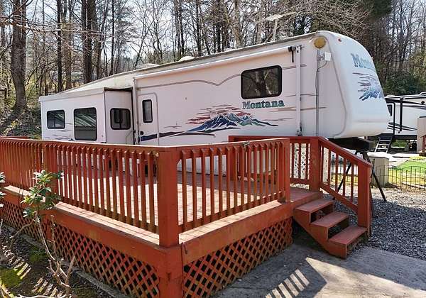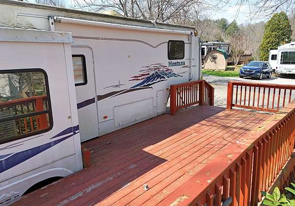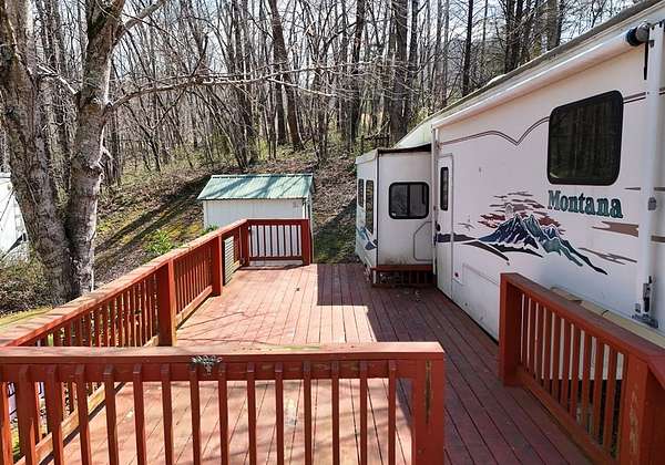 Enjoy the North Georgia mountain lifestyle with this well maintained RV lot featuring a 2003 Montana rear living camper. This setup offers comfort and a spacious layout, perfect for relaxing or hosting guests. The rear living design provides an open and inviting living area, while the private bedroom adds to the overall convenience. The property is set up for outdoor enjoyment with plenty of decking space, ideal for entertaining or simply taking in the peaceful mountain setting. An outbuilding with power is included, giving you excellent additional space for storage, a workshop, or a dedicated hangout area. Located in a well maintained RV park, owners and guests have access to a community bath house with washers and dryers, providing added convenience for longer stays. The location is hard to beat, just a short drive to Brasstown Bald, the Appalachian Trail, Vogel State Park, Helton Creek Falls, as well as Hiawassee and Blairsville. This is a great opportunity to own a turn key mountain getaway with a low maintenance setup and the added benefit of a powered outbuilding.