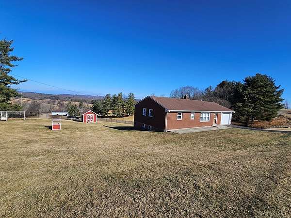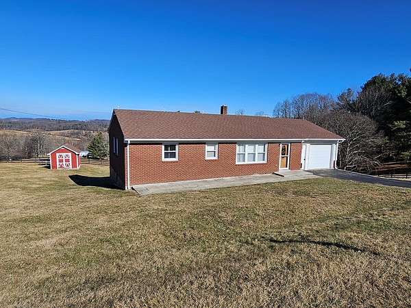 Charming brick ranch on 2.75 acres offering beautiful views and peaceful country living! This one-level home features 3 bedrooms and 1 bath on the main level with hardwood and laminate flooring. The basement includes an additional bath and is ready to be finished to suit your needs, providing expansion potential. Enjoy the efficiency of a heat pump, plus outbuildings and a 1-car garage for extra storage or workspace. Situated on a really nice lot, this property is conveniently located just minutes from the Blue Ridge Parkway, the Blue Ridge Music Center, Galax, and the North Carolina line-Nice place for those seeking both tranquility and easy access to local attractions. Call Today!