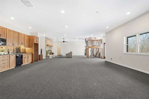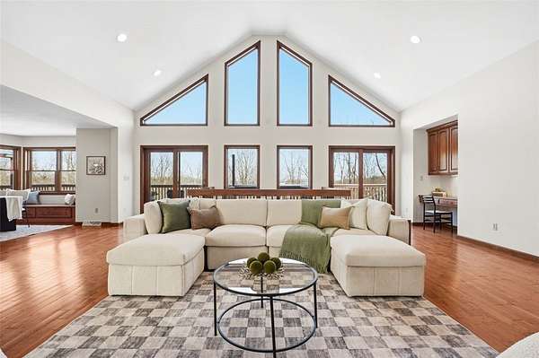 This sprawling ranch, proudly built by Action Builders, offers the rare opportunity for complete one-level living on 2 acres of wooded peace. It boasts the rare blend of timeless design, superior construction, and thoughtful engineering—where quality goes far beyond what meets the eye. From the ground up, this home was constructed with longevity, comfort, and efficiency in mind. A 10” block foundation with concrete and rebar-filled front and side walls is paired with Tuff-N-Dry waterproofing, insulation board, and 4” exterior French drains backfilled with gravel to 8’, ensuring a dry, solid foundation. Premium 2x6 framing, plywood sheathing, Tyvek wrap, and loose-fill insulation deliver exceptional strength and energy performance. 14” floor trusses allow for expansive spans and minimal deflection, while roof trusses with 5/8” plywood, 30-year Owens Corning Duration shingles, and 14” of attic insulation complete the superior structural package. Step inside to discover refined interiors anchored by 4” solid oak hardwood floors throughout the great room, dining area, and kitchen. A dramatic 16’ double-sided, wood-burning stone fireplace serves as a stunning focal point, connecting spaces with warmth and architectural presence. The cathedral ceiling enhances the sense of openness and light, complemented by expansive A-frame windows. The lower level offers 10’ ceilings, recessed beams for a clean, open aesthetic, and incredible flexibility for entertaining or relaxing. The outdoor functionality is unparalleled with an asphalt main driveway engineered with a 12” base—built to support large trucks—while exposed aggregate driveways and lead walks on the main level elevate the entry experience. The four-car garage with extra storage bays includes oversized 10’ x 8’ lower garage doors, ideal for larger vehicles, recreational equipment, and storage. Great location minutes to 79, 576 and Morgan Rd.