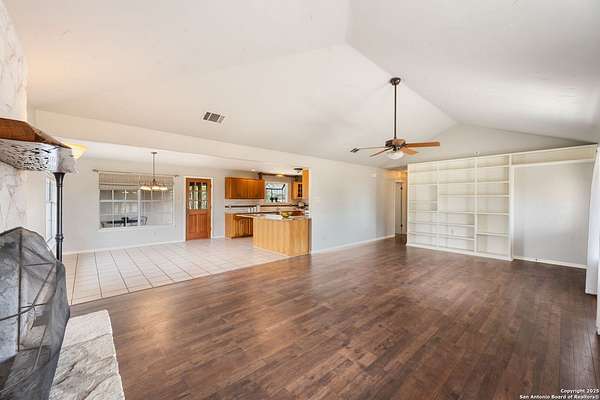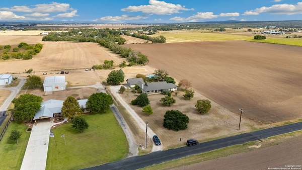 OPEN HOUSE - Sunday, Dec. 14th from 12:00-3:00. Welcome to Your Slice of Texas Country Paradise! Experience peaceful country living just minutes from historic Castroville in this beautiful 3-bedroom, 2-bath home set on 1.65 acres. The property is graced with mature oak and pecan trees and other beautiful landscape plantings, offering natural shade, color, and a serene rural setting that perfectly captures the quiet charm of the Texas Hill Country. Enjoy your morning coffee on the covered patio and unwind in the evenings by the above-ground sparkling pool. Inside, the open living area features a vaulted ceiling and a striking stone fireplace-perfect for cozy nights at home. The spacious kitchen and dining area make entertaining a breeze, while the huge three-car garage provides ample room for vehicles, tools, and storage. The large primary suite includes a versatile flex room, walk-in closets, and plenty of storage-ideal for a home office, nursery, or private retreat. All this tranquility is just a short drive from San Antonio and the conveniences of town. This property truly captures the best of life in Medina County-where comfort, space, and Texas beauty come together. Please be aware that some photos have been virtually staged.