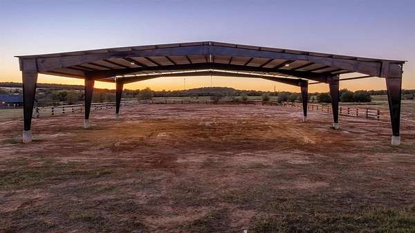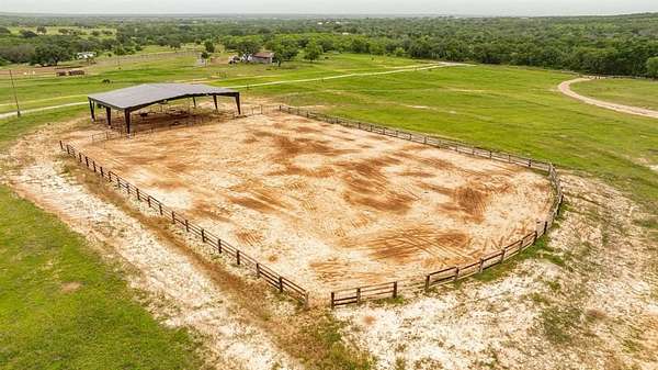 Equestrian enthusiasts will appreciate the wood-fenced 200x150 arena with a generous 80x60 cover, ideal for training and riding. This modern ranchette combines luxurious living with practical amenities, offering the ultimate retreat in the heart of Texas ranch country.