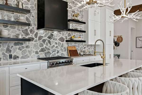 - Decorative Lighting, Kitchen Island, Open Floorplan, Pantry, Vaulted Ceiling(s)