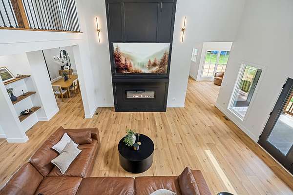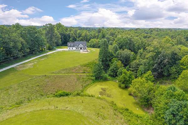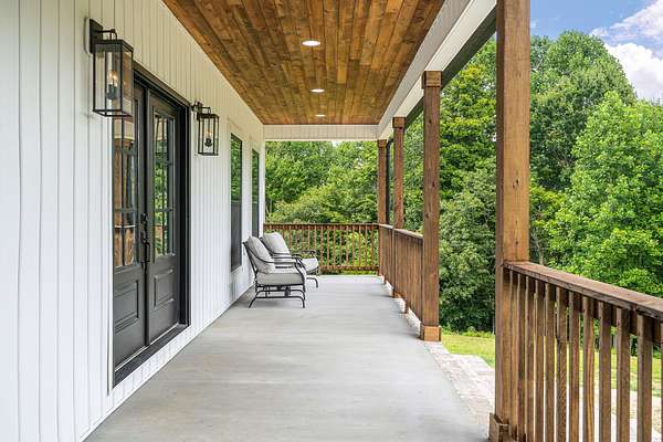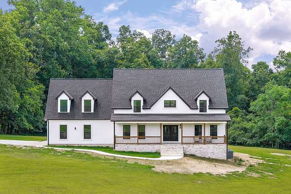 Experience modern country living at its finest at 250 Dyer Ridge Rd! This 3BR/3BA home sits on 12.71 acres of peaceful, private land with no close neighbors and a long driveway for ultimate seclusion. Inside, enjoy 3,568sqft of open living space with LVP flooring throughout, large windows that allow natural light to fill the space, and a stunning black accent wall framing the electric fireplace. The kitchens boast quartz countertops, gold finishes, clean white cabinetry and sleek appliances. Each bedroom has it's own bathroom! There are two sets of red oak stairs, one which leads to a great bonus space. Large covered front and back porches feature wood-accented ceilings, recessed lighting, and ceiling fans. Concrete core-filled and brick steps add durability and charm. Outside, you'll find a pond in front, a hunting spot out back, and plenty of room to roam. Light restrictions offer flexibility, and interstate access is just 5 minutes away. A rare blend of comfort, style, and privacy!