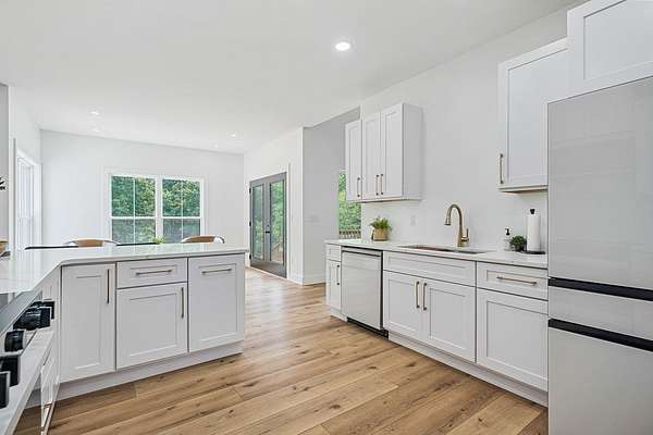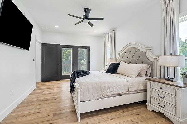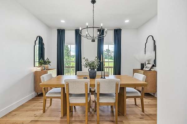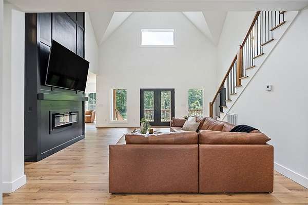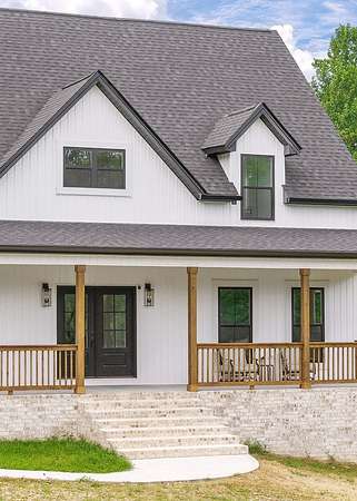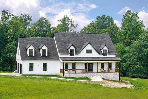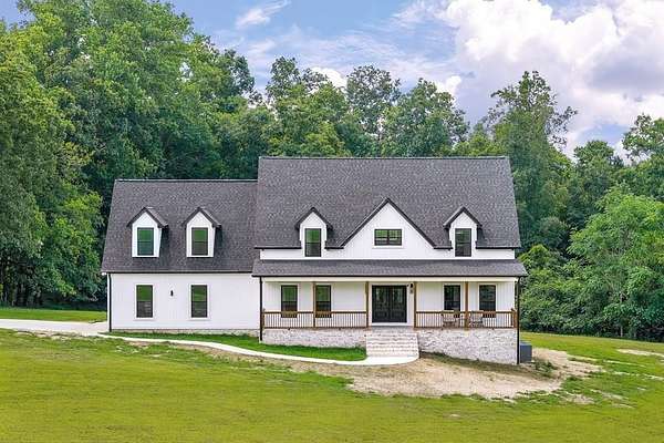 Experience modern country living at its finest at 250 Dyer Ridge Rd! This 3BR/3BA home sits on 12.71 acres of peaceful, private land with no close neighbors and a long driveway for ultimate seclusion. Inside, enjoy 3,568sqft of open living space with LVP flooring throughout, large windows that allow natural light to fill the space, and a stunning black accent wall framing the electric fireplace. The kitchens boast quartz countertops, gold finishes, clean white cabinetry and sleek appliances. Each bedroom has it's own bathroom! There are two sets of red oak stairs, one which leads to a great bonus space. Large covered front and back porches feature wood-accented ceilings, recessed lighting, and ceiling fans. Concrete core-filled and brick steps add durability and charm. Outside, you'll find a pond in front, a hunting spot out back, and plenty of room to roam. Light restrictions offer flexibility, and interstate access is just 5 minutes away. A rare blend of comfort, style, and privacy!
