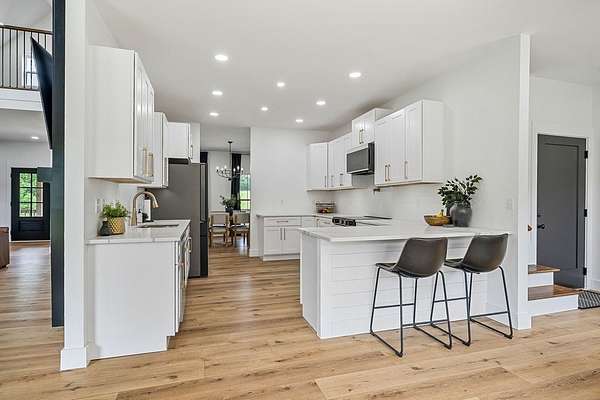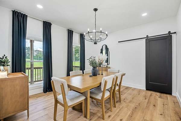 If you've been searching for space, privacy, and modern design, this 12.71-acre retreat truly stands apart. Set behind a long private drive with no close neighbors and light restrictions, this modern country home offers rare seclusion just 5 minutes from the interstate. Inside, 3,568 sqft of open living space features LVP flooring, oversized windows, and a striking electric fireplace framed by a bold black accent wall. The designer kitchen shines with quartz countertops, clean white cabinetry, sleek appliances, and elegant gold finishes. Each bedroom enjoys its own private bath, while red oak staircases lead to a spacious bonus room perfect for work, guests, or play. Covered front and back porches feature wood-accented ceilings, recessed lighting, and ceiling fans. A peaceful front pond, wooded acreage, and wide-open land invite you to relax, explore, and unwind. Come experience the freedom this special property offers by scheduling your showing today!