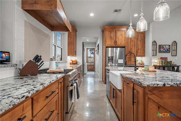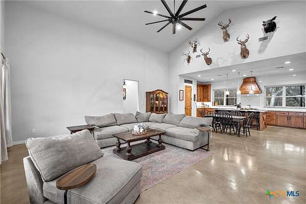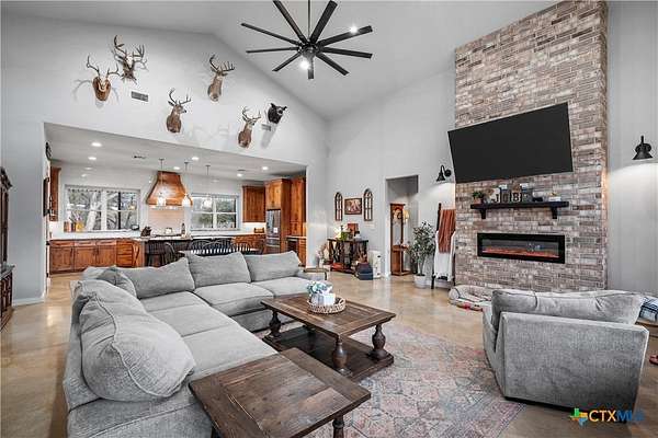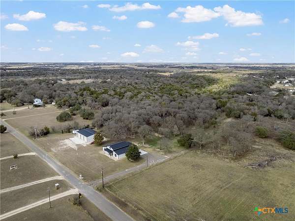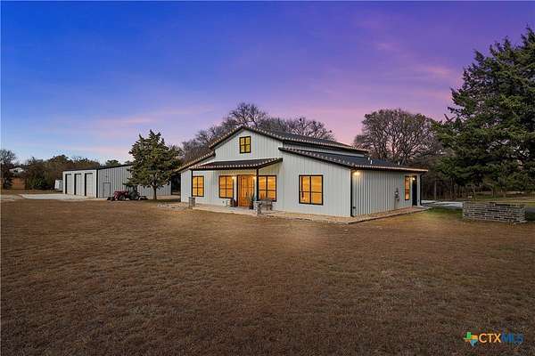 Custom-built in 2022 on OVER 5 ACRES with a WORKSHOP, this stunning barndominium offers 3 bedrooms, 2.5 baths and a separate office. The home features unique farmhouse-style finishes and a completely open-concept layout with soaring vaulted ceilings in the living room that's ideal for showcasing trophy mounts or statement decor. The split-bedroom floor plan places the secondary bedrooms on the opposite side of the home, connected by a Jack-and-Jill bathroom. All bedrooms include large closets for ample storage! There is also a massive storage closet in the hallway. You will also appreciate that the home is energy-efficient with full spray-foam insulation and two propane tankless water heaters. Situated on 5.46 acres with mature trees and outside city limits, the property offers privacy and space to roam. Fresh landscaping enhances the curb appeal, and a detached 60x40 workshop with 14-ft sidewalls and three roll-up doors is fully spray-foamed and equipped with its own power meter-perfect for hobbies, equipment, or business use. This property is located in Bruceville-Eddy ISD with easy access to I-35 and all that Waco has to offer.