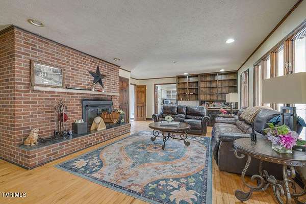 Welcome to 250 Hummingbird Lane in Unicoi, Tennessee, a beautiful brick ranch offering space, privacy, and the peaceful setting of East Tennessee living. Situated on over eight acres, this three bedroom three bathroom home provides plenty of room to enjoy the outdoors while remaining conveniently located near Interstate 26 for easy access to nearby towns and amenities. Inside, the main level features hardwood flooring throughout much of the home along with tile flooring in the kitchen and dining areas. The spacious living room features a beautiful fireplace that creates a warm and inviting gathering space for relaxing or entertaining. The den also offers a second fireplace, adding additional charm and a cozy space for everyday living. Step outside to enjoy the covered front porch, the perfect place to sit back and take in the scenic surroundings and mature trees across the property. The land includes fenced areas along with some fenced pasture that is ideal for animals, gardening, or hobby farming. A barn provides additional storage and versatility for equipment or livestock. The property also features a beautiful natural spring fed pond that maintains water year round, adding to the peaceful setting and natural beauty of the land. The full basement adds flexibility with additional space for storage, a workshop, or future living area. It also includes a drive under garage along with a covered carport attached to the home for added convenience. With over eight acres, usable land, mature trees, a spring fed pond, and a convenient location near Interstate 26, this property offers the perfect balance of privacy and accessibility. Buyer to verify all information contained herein.