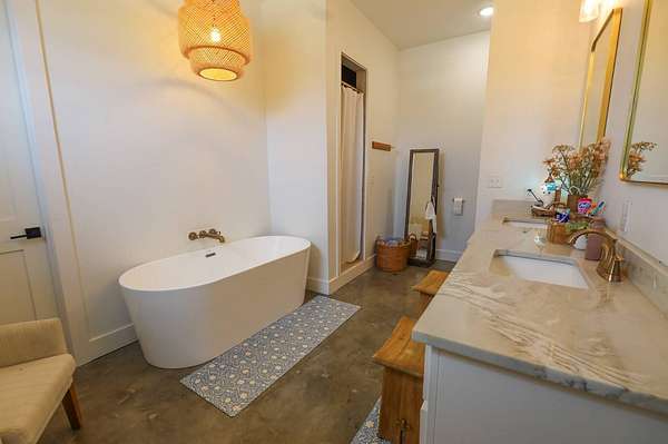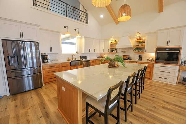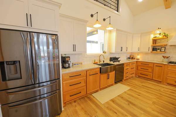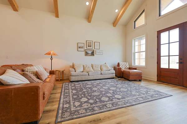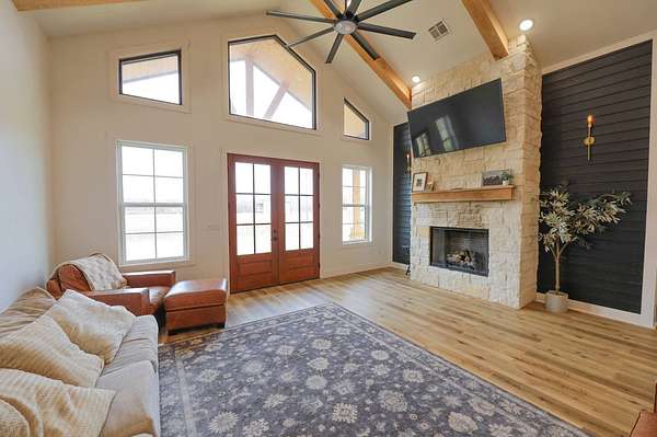 Brand new custom-built home with a shop, pond, and more. This home was just built in 2022, and the total living area is 2,939 +- square feet, with four bedrooms and two and a half baths. Throughout the house, you will find quartz countertops and black stainless steel appliances, and solid wood doors. There's a generac which will power the entire home if there is a power outage. The stove is gas, and there's a pot filler above it. The kitchen has soft-close drawers and some White Oak Cabinets. This home, made out of solid white bricks, is well insulated with spray foam in the ceilings and insulation in the walls. The attic is also heated and cooled. The trusses were custom-built, and the wood posts are cypress. Gutters are installed, and there is a spacious two-car carport and a covered back porch. A sprinkler system is in the back, and there's a tankless hot water heater. A large shop is at the front of the property with two roll-up doors. The pond has a bream in it along with an electric well. This property fronts Jones Rd. and is only 500 +- yards from Long Lake, a public lake, along with a public boat ramp. Call today from information.