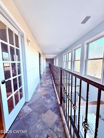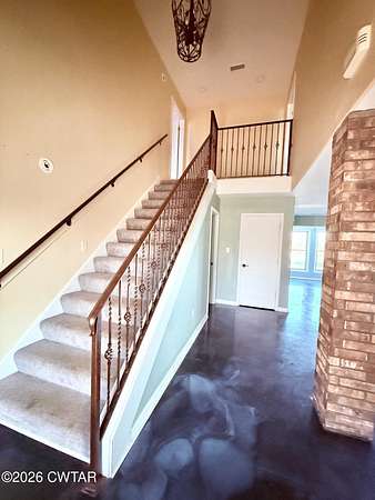 This massive 5300+ square foot brick home sits on 2 acres in the country. There are 5 bedrooms (one can be used as a game room/play room) plus an additional office/playroom upstairs. A beautiful staircase in the front of the house takes you to the west facing side of the home where you will find two bedrooms that share a Jack and Jill bath, each with its own vanity and walk in closet plus an additional bedroom. A second staircase opens to the east facing side of the home and opens into a playroom and large game room/bedroom. The upstairs bedrooms all have French doors that open onto a hallway overlooking the large back yard. The large primary suite has a two sided fireplace shared with a large sitting area as well as TWO separate his and her bathrooms. Previous owners stated they installed three new HVAC units, roof, and tankless water heater. Property does need a few light fixtures replaced but overall the property is a great investment considering all it offers!