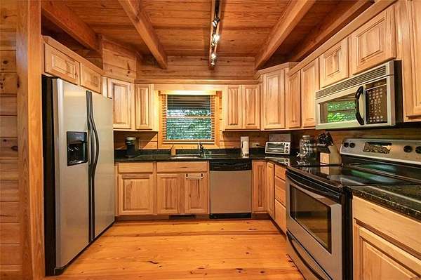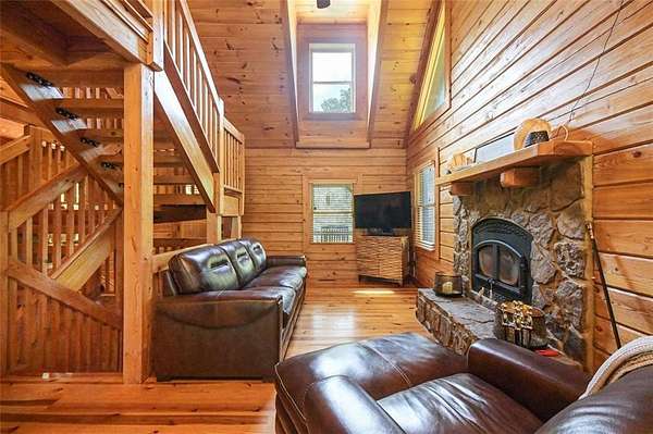 Priced to sell. Absolutely STUNNING mountain cabin retreat tucked away in the mountains of North GA in the sought after and gated community of Talking Rock Creek Resort. NO RENTAL RESTRICTIONS - you may live in, place long or short term tenants! Listen to the serene sounds of the creek running through your backyard while disconnecting on your screened in deck (it's like your own luxurious treehouse!). The main level has a covered front porch that is perfect for rocking chairs and swings, a cozy indoor fireplace, open concept dining room and kitchen - fully equipped with like new appliances, powder room and walkout screened deck overlooking the trees. Hide out upstairs in your primary suite with the perfect en-suite bathroom and dual closet system. On the lower level are two additional bedrooms with an expansive jack and jill en-suite, ample storage, laundry room equipped with newer washer and dryer. Step out on your lower level balcony that provides direct access to a staircase leading you down towards the creek. Single garage perfect for ideal for storage. Enjoy the community resort pool and tennis court that is an easy drive or golf cart ride! If you sleep on this opportunity, you may never get the chance to sleep in it! Call to schedule your visit today!
