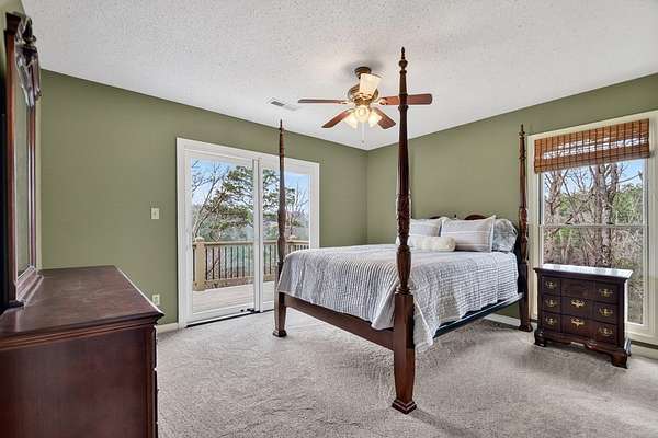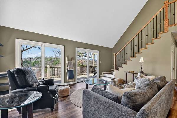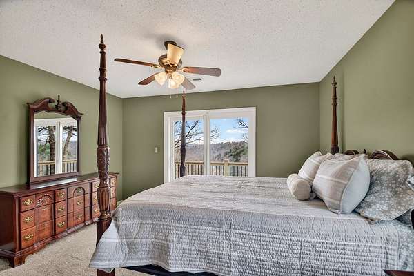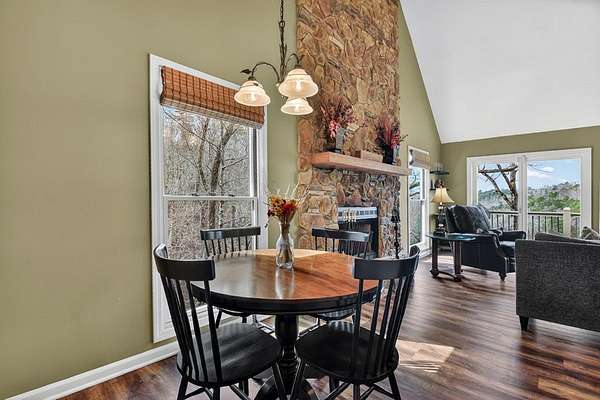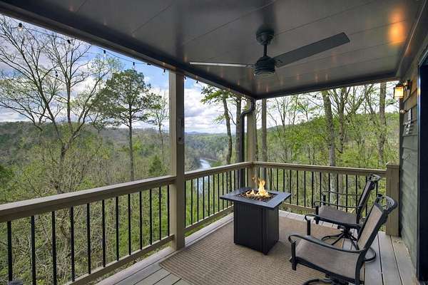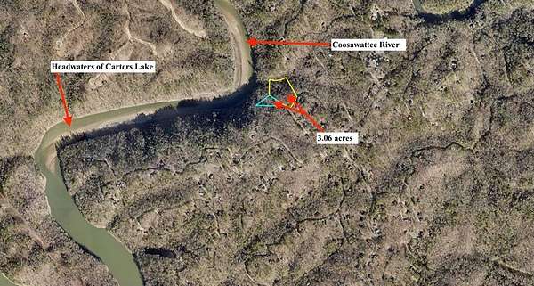 Most unique view on the market! VIEWS of MOUNTAINS, RIVER & LAKE! Rare opportunity to own a mountain retreat with breathtaking year-round views of the mountains and the spectacular spot where the Coosawattee River flows into the headwaters of Carters Lake. Privately situated at the end of a quiet road on 3+ serene acres, this beautifully maintained 3BR/3BA cabin is selling furnished and includes the adjacent lot for added privacy. Enjoy incredible sunsets from three levels of porches while soaking in the peace and beauty of the North Georgia mountains. The open-concept great room features vaulted ceilings, durable LVP flooring, and a cozy wood-burning fireplace. With three levels of living—each offering its own bedroom and bath—there is plenty of space for family and guests. The upper-level suite offers a spacious walk-in closet and private porch, while the finished terrace level features a family room with a second fireplace, built-in shelving, guest bedroom, full bath, and laundry area. Bordering U.S. Army Corps of Engineers property, you can walk to Carters Lake from your backyard, and a fenced yard is perfect for your four-legged friends. Located in a sought-after river resort community with exceptional amenities including 3 pools, river parks, hiking trails, rec center, tennis, pickleball, fishing lake, and more, all just 15 minutes from town. Recent upgrades include a new generator, roof, HVAC, stainless appliances, Pella windows, LVP flooring, built-ins, porch railings, retaining wall, and freshly painted decks. Long list of improvements! This home is perfect for full time living, second home, or a vacation rental. (Note: Buyer may keep the additional lot for privacy, or sell in the future.)