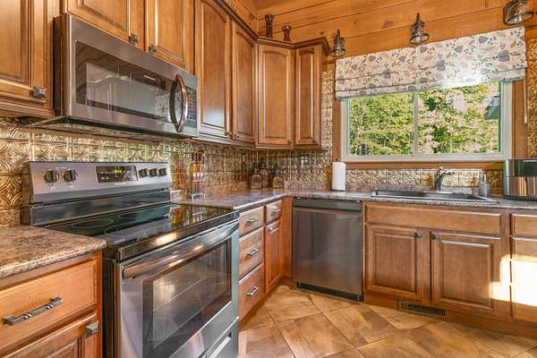 - Dishwasher, Disposal, Electric Oven, Exhaust Fan, Microwave, Refrigerator