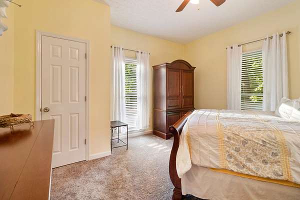 - Bathroom Mirror(s), Ceiling Fan(s), High Ceilings, Kitchen Island, Open Floorplan, Pantry, Split Bedrooms, Walk-In Closet(s)