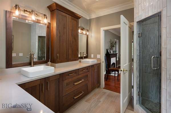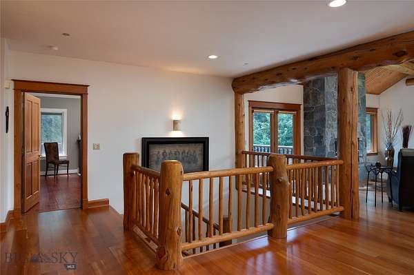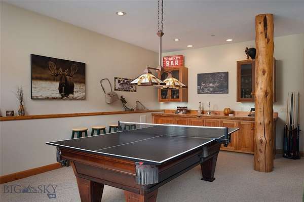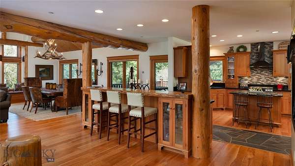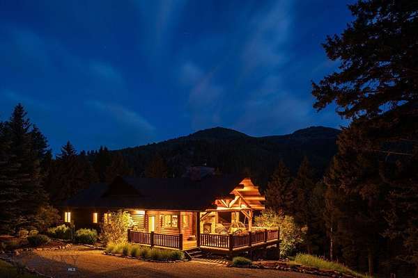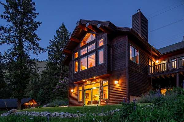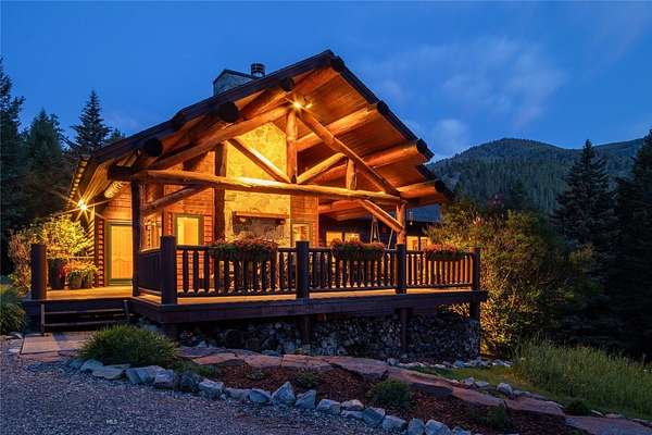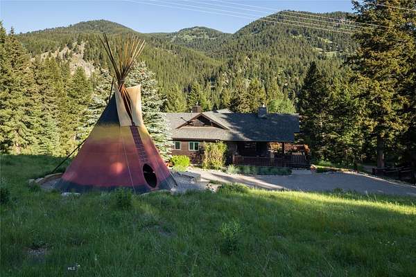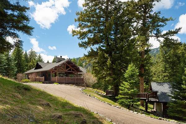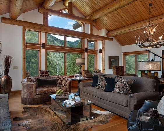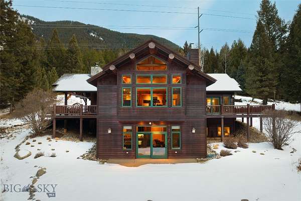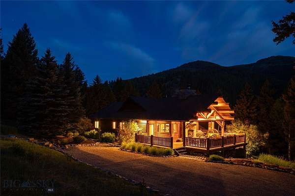 Experience the best of Montana living with this fully furnished mountain retreat located on 10 private acres in Gallatin Canyon. Just minutes from Big Sky and steps from the world-famous Gallatin River-a renowned blue ribbon trout fishery and world-class fly-fishing destination-this property offers unmatched access to outdoor recreation, fishing, hiking, and wildlife. It directly borders Gallatin National Forest, unlocking millions of acres of public land that stretch all the way to Yellowstone National Park. The custom-built home blends rustic charm with modern comforts. The main level features an open-concept living area with vaulted ceilings, fireplace, custom metal artwork, and floor-to-ceiling windows that capture expansive mountain views. A spacious, covered outdoor patio extends the living space and includes a wood-burning fireplace-perfect for year-round gatherings and enjoying the fresh mountain air. The primary suite is also located on the main floor, offering convenience and privacy. The walk-out lower level includes two additional bedrooms, a large recreation room with wet bar, and access to a stone patio and flat lawn-ideal for outdoor entertaining. Additional features include a heated detached garage with a workshop and an unfinished upper level offering potential for future expansion. The beautifully landscaped grounds include a horseshoe pit and a teepee, adding unique character to the outdoor space. Whether you're seeking a full-time residence or vacation getaway, this rare offering combines privacy, scenery, and proximity to Big Sky's amenities. Zoned for flexibility and potential additional structures, it's a true legacy property.