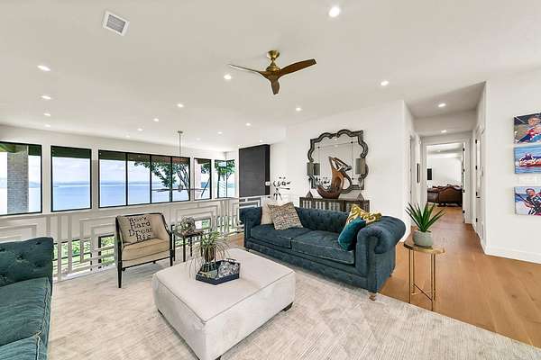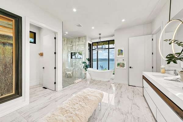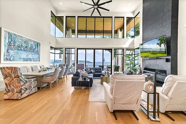 Heber Springs - Stunning lakeview estate on 15 acres w/ private, gated entry. Built in 2022, this 4,058 sq. ft. home has 5 bdr./4.5 baths & a panoramic view from every room. The two downstairs guest bedrooms open to a large patio w/ its own fireplace. In addition to the 4/4.5 home, there is a large in-law suite w/ a handicap friendly bathroom, kitchenette, and its own small patio. There is a generator & safe room. The kitchen has upscale appliances & large walk-in pantry. Master bedroom has electric blinds (as does the living room), & a retractable TV, along w/ a patio. The master bath has heated floors, a walk-in shower, a soaker tub, & his and her closets (with vanity for her). The upstairs bedroom is actually its own suite w/ a seating area, full bath & sleeping quarters, in addition to the large loft at top of the stairs that holds two full-sized couches. In addition to the attached garage, also on the property is a 40' x 50' large shop w/ two 12-foot garage doors, a half bath w/ washer & dryer, a heated/cooled office, & more storage - not to mention the same the same great lake view as the home! 16.49 acres, next door to this home, is currently for sale as an option.
