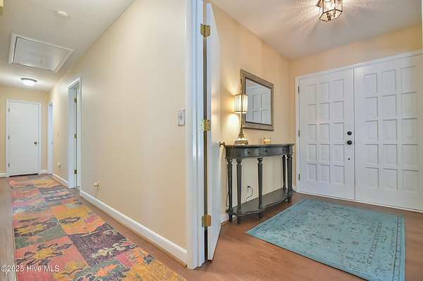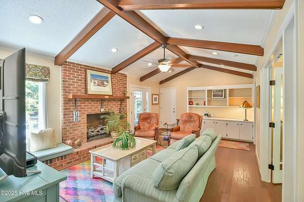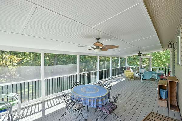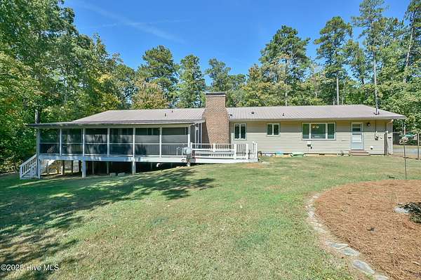 Discover a unique gem in Chatham County, perfectly situated near the tranquil shores of Jordan Lake and conveniently accessible to Chapel Hill, UNC Medical Center, Durham, & Cary. This beautifully updated 1973 Ranch-style home is designed to capture your heart from the moment you arrive. Nestled on 2.41 acres of serene and private land, this charming residence features three spacious bedrooms and two and a half baths, making it an ideal choice for those seeking a forever home. The inviting double door entry leads you into a formal living room, where a large casement window fills the space with natural light, seamlessly transitioning into a formal dining area. The sunny kitchen and breakfast nook are equipped with elegant granite countertops, stainless steel appliances, and durable cork flooring, creating a delightful environment for culinary exploration. The expansive family room is a true highlight, boasting a stunning cathedral ceiling with exposed beams and a cozy masonry fireplace with gas logs, perfect for creating lasting memories with family and friends. Step outside to enjoy the huge screened porch that overlooks peaceful gardens and wooded areas, providing a tranquil retreat for relaxation. The adjoining deck is ideal for grilling and outdoor entertaining, enhancing your living experience. Additional features include a two-car side-entry garage and a spacious unfinished basement area that offers a generous workshop space and an additional one-car garage, catering to all your storage and hobby needs. With major systems, including the roof, HVAC/propane heat, and tankless water heater, all updated within the last ten years, this home combines beauty with modern efficiency. Serviced annually and equipped with well and septic systems, this property is ready for you to move in and make it your own. Don't miss the chance to own this very special home- your private retreat awaits!