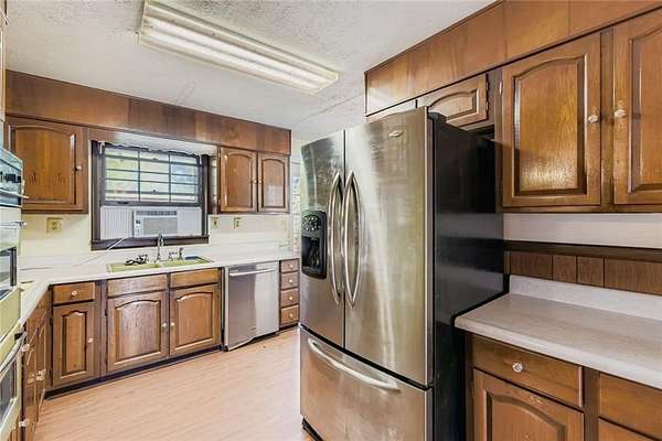 Huge brick ranch on a gorgeous, private 2-acre lot with a finished basement, suitable for an in-law suite or rental. Basement includes a kitchen, bedroom, bath, and den. Features two fireplaces, deck, patio, and no HOA. Home needs some TLC but offers strong potential for rental or owner occupancy. The backyard extends beyond the pathway, providing additional land. PLEASE NOTE, THAT THE BACK YARD LOT EXTENDS PAST THE PATH WAY IN MIDDLE OF LOT. ONCE YOU WALK PAST THE PATHWAY, THERE IS MORE LAND THAT CONTINUES ALL THE WAY TO TREES/NEIGHBOR FENCE. Sold "as is", Seller shall not make any repairs!