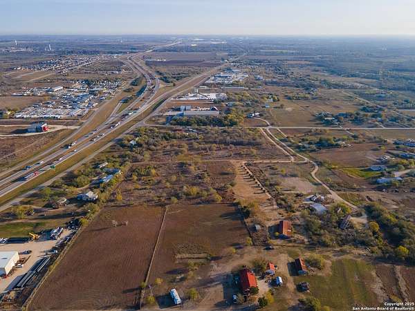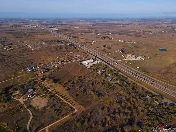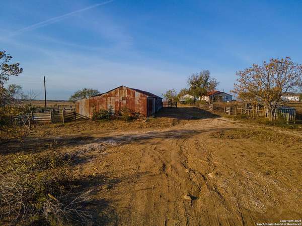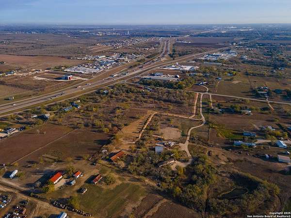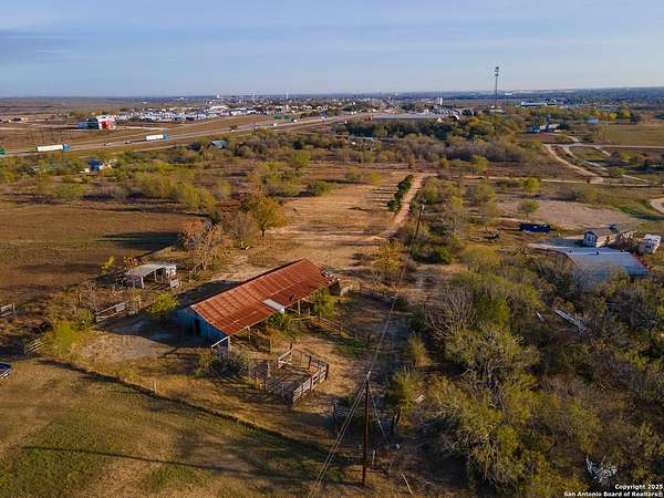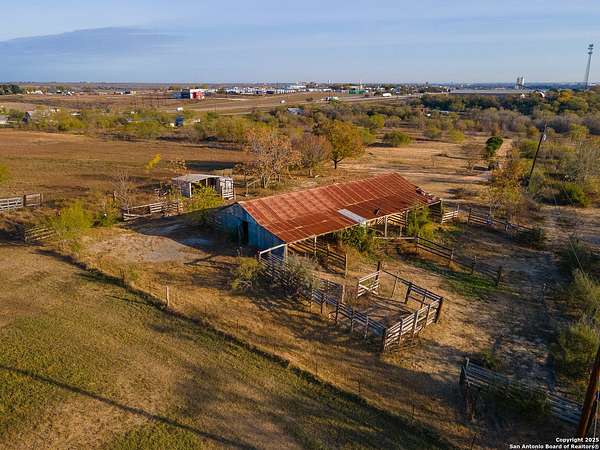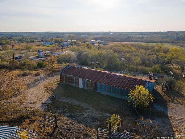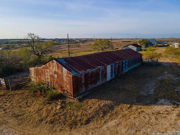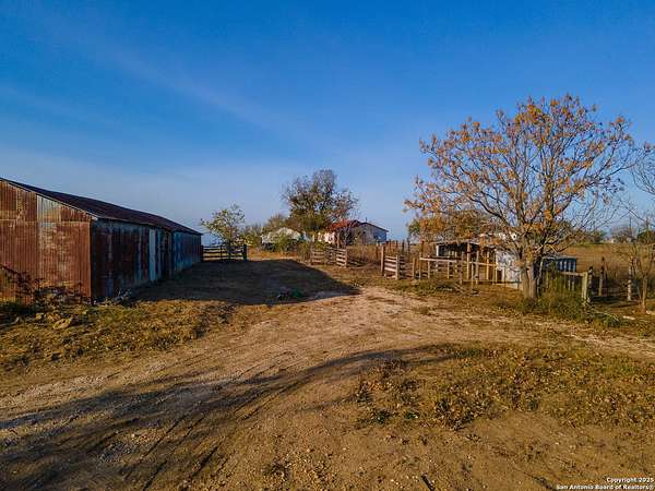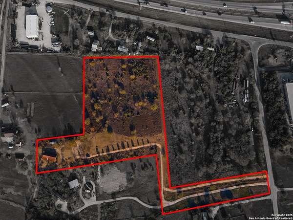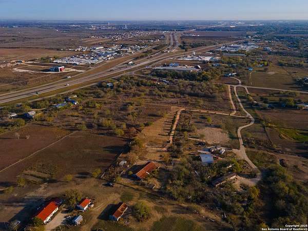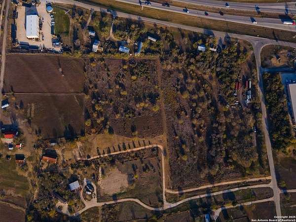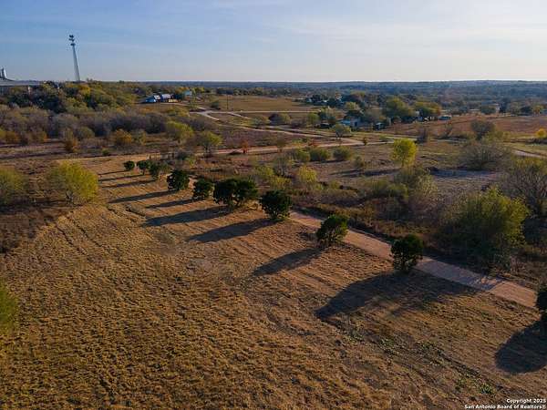 Discover the freedom and potential of this one-of-a-kind 8.44-acre hilltop property, perfectly positioned on a private, flag lot that offers both seclusion and accessibility. With no restrictions, the possibilities are wide open-build your dream home, create a small ranch, or invest in land with incredible versatility. The level building site sits atop a scenic plateau, providing elevated positioning for expansive views and cooling breezes. A large rustic barn anchors the property and is ready to accommodate livestock, feed, equipment, tack, or serve as generous storage. Fenced paddocks/turnouts are already in place on the backside of the barn. Key infrastructure is already in place with water, electricity, and septic, allowing you to move forward with ease. Enjoy the benefits of no city taxes while still being conveniently located near downtown San Antonio, just minutes from Seguin, and quick access to IH-10 for an easy commute. This rare combination of acreage, utilities, elevation, and location makes this property an exceptional opportunity for those seeking space, privacy, and freedom-without sacrificing convenience.