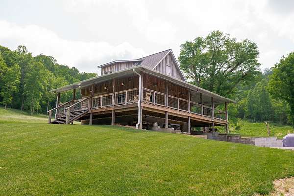 Secluded UNRESTRICTED 115 acre farm located in walking distance to Cordell Hull Lake & a little over an hr to Nashville Airport. 2 Bedroom/2 Bath meticulously customed home sits on a full basement with hickory cabinets, granite, tiled backsplash, stainless appliances, hand hewn wood floors, custom tile & stone showers, tankless water heater, cedar closets, custom wood construction throughout home to include wormy maple, walnut, cherry & oak to name a few. Upstairs suite has ductless HVAC. Land is mostly wooded w/approx 15 acres of pasture land perfect for gardening, livestock & horses, 2 ponds, spring, creek, and an abundance of riding & hiking trails.2 barns(1 has water),detached 24x30 garage/shop w/ 12x30 lean to equip. shed. Basement w/gas fireplace could be finished out for additional living space.10ft covered porch on 3 sides is perfect for coffee drinking & enjoying the quietness of nature. Farm also offers lake views from top of ridge and is a sportsman's hunting paradise. 24 hour showing request notice.