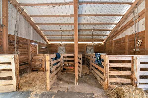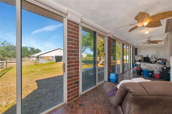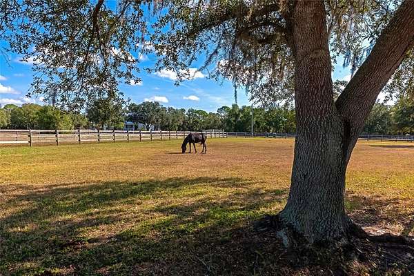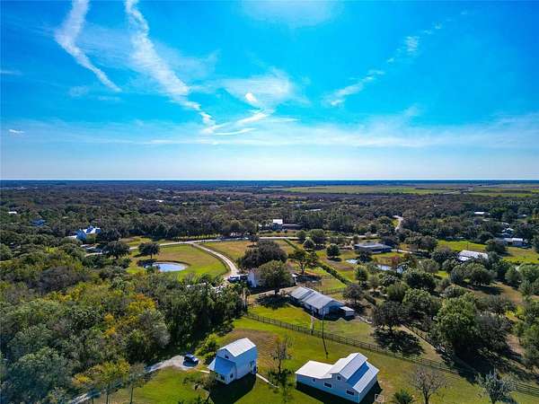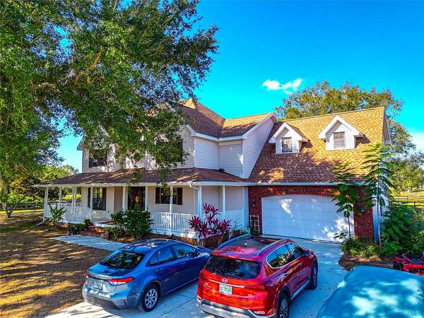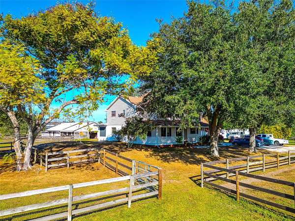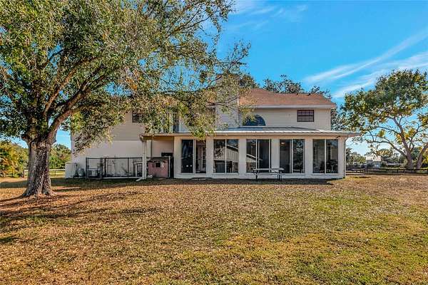 Welcome home to this breathtaking and spacious ranch-style residence nestled on 5 gorgeous acres in the highly sought-after Ranches at Bern Creek community. From the moment you arrive, you'll feel the serenity of wide-open spaces, peaceful surroundings, and true country living, all just a short drive from modern conveniences. As you pull up the long dirt driveway, you'll be greeted by a fenced barn area, perfect for getting your horses settled and enjoying the equestrian lifestyle this community is known for. The property also features a 2-car garage and abundant space for parking, trailers, and more. A charming wrap-around porch sets the tone for relaxing mornings with coffee or evenings spent sipping sweet tea while soaking in the tranquil views. Step inside and discover an oversized open floorplan filled with beautiful natural light, high ceilings, and tile flooring throughout the main level. The inviting living room boasts a cozy fireplace for gathering during the holidays or quiet nights in. Entertain in style in the formal dining room, perfect for hosting dinner parties and special celebrations. At the heart of the home sits the warm and welcoming kitchen, complete with wooden cabinetry, stainless steel appliances, and a built-in breakfast bar, a prime spot for casual brunches and morning chats. The main floor also includes a bonus office space, which could be used for remote work or creative projects, as well as a full-sized indoor laundry room for added convenience. Upstairs, an expansive loft area awaits, ideal as a second living room, game room, or a bright and airy office. Retreat to the luxurious primary suite, featuring wood flooring, custom built-ins, and an impressive en-suite bathroom with dual sinks, a garden-style soaking tub, and a spa-inspired walk-in shower. Two additional spacious bedrooms ensure plenty of room for family, guests, or flexible living. Off the back of the home, discover a fully enclosed porch perfect for indoor gardening, relaxation, or simply appreciating the serene views that stretch on for miles. Centrally located near top-rated schools, shopping, and dining, and less than 40 minutes from the world-famous sandy beaches of Siesta Key, this home delivers a blend of peaceful country living and easy access to coastal fun. Don't miss your opportunity to experience the lifestyle you've been dreaming of, call today to schedule your private tour before this beauty is gone!
