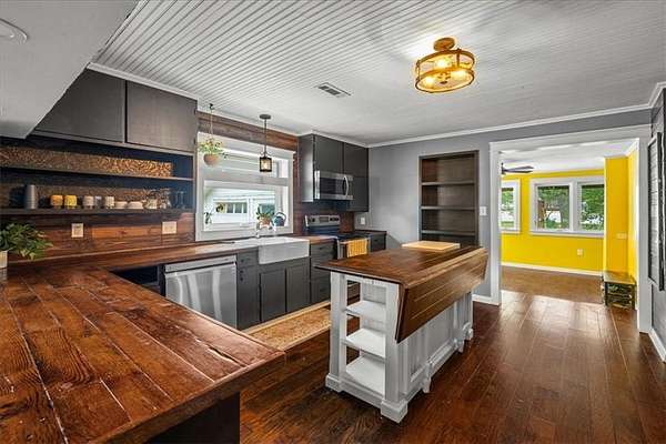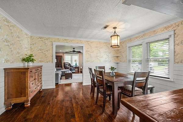 This beautifully updated farmhouse offers 4 bedrooms, 2 baths, a spacious front porch, and an additional room upstairs-perfect for an office or playroom. Set on 1.68 acres, there's plenty of outdoor area to relax and enjoy country living with modern comfort. This house also features a charming kitchen with warm wood accents and vintage-inspired lighting to complete the cozy farmhouse feel. Just off the kitchen, the dining room offers an open, inviting space with room for a large table-- perfect for all gatherings.The attic provides an extra 150 sqft of unfinished space. Motivated seller