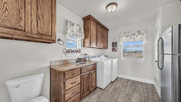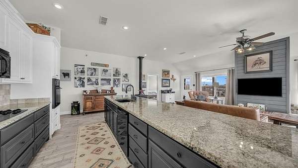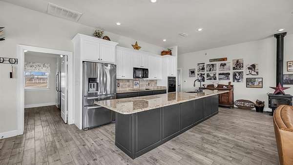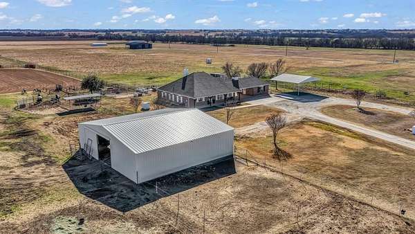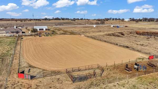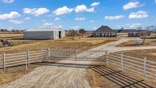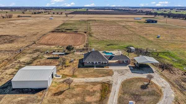 Outside, the property is well-equipped with a 2,500 sq ft barn featuring four oversized stalls with water and electricity, ample storage, and a custom tack room door, along with a newly completed roping arena with custom footing, a loafing shed with north wind block, and an oversized carport for equipment, truck, and trailer storage. Additional features include a gated entrance, private water well, storm shelter conveniently located next to the home, mudroom with sink and extra refrigerator, Ag Exemption, and location within Era ISD, surrounded by desirable country estates.