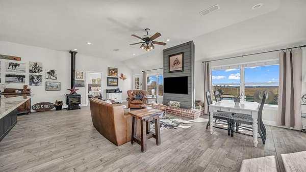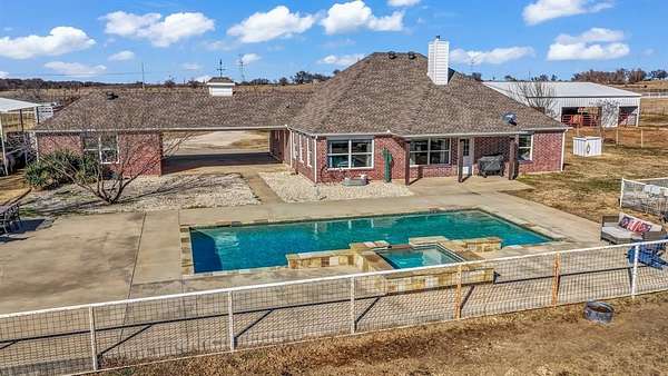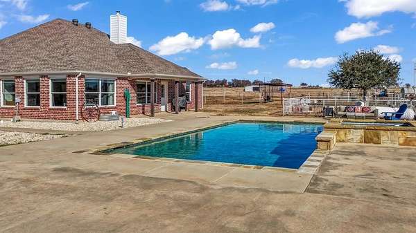 Enjoy peaceful country living in beautiful Era, Texas, with an easy commute to the DFW Metroplex. This charming one-story brick home sits in a serene setting overlooking a stunning pool and offers 3 bedrooms, 2.5 bathrooms, and an open floor plan filled with natural light. Easy-to-maintain wood-plank ceramic tile runs throughout the main living areas, while the spacious living room features a cozy wood-burning stove.