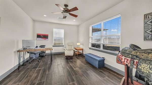 The expansive kitchen includes granite countertops and a large island ideal for gathering and entertaining. The primary suite offers a great vanity, walk-in closet, deep soaking tub, and a separate shower. A private home office provides the perfect space for focused work from home.