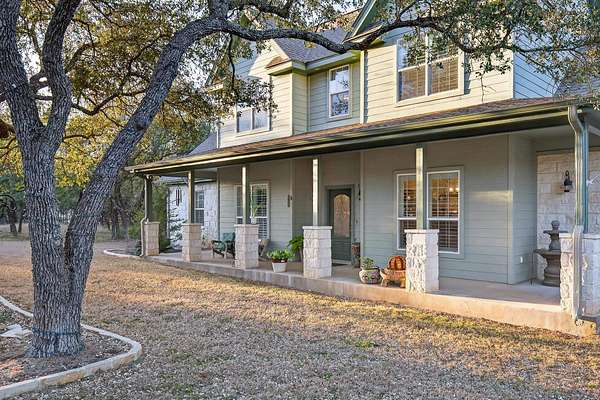 Nestled in the heart of the Texas Hill Country, this cozy luxury retreat blends refined custom craftsmanship with effortless indoor-outdoor living. The four-bedroom, four-bath main residence offers spacious comfort, anchored by a dedicated media room and an oversized laundry room designed for everyday ease. Step outside to a private resort setting featuring a custom 46' x 20' free-form pool complete with a cascading waterfall, hot tub, and multiple sun shelves-perfect for relaxing afternoons or unforgettable gatherings. Covered and open patios, a glowing fire pit, and expansive entertaining spaces invite friends and family to linger long after sunset. A separate casita provides a comfortable guest suite or personal retreat, complete with a workshop area, while a detached workshop with RV hook-up and multiple garages offer exceptional flexibility for vehicles, hobbies, and storage. Ideally located just minutes from Horseshoe Bay and Marble Falls, this property delivers Hill Country tranquility with city convenience-only a conversation away from Austin. A rare opportunity to enjoy luxury living designed for gathering, entertaining, and making lasting memories.