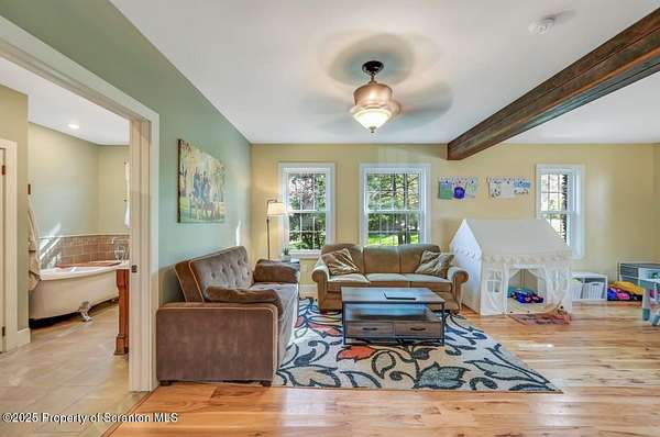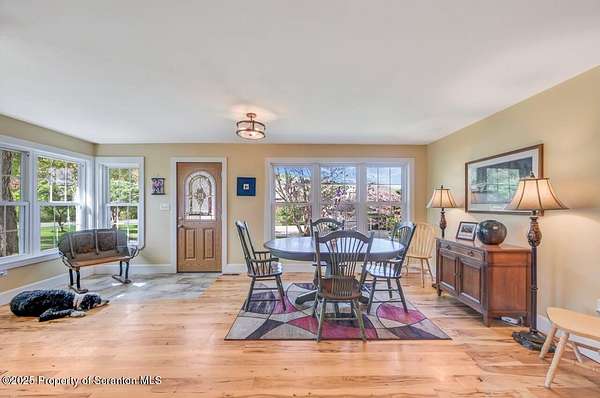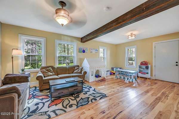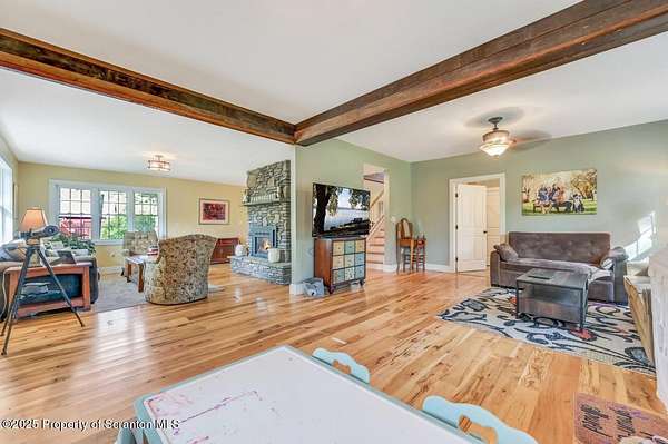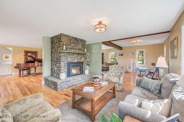 Welcome to your dream retreat -- 53.5 acres of peace, privacy, and panoramic sunsets. This move-in-ready home offers the perfect blend of modern upgrades and farmhouse charm, ideal for anyone looking to relax, raise a family, or simply enjoy the beauty of nature. Inside, you'll find stunning hickory floors on the main level, a cozy stone fireplace in the living room, heated floors in the office and part of the kitchen, and original pine floors upstairs that add warmth and character. The home features energy-efficient LED lighting throughout, a new roof (2017), new furnace and central air (2017), upgraded 200-amp electric, and a backup generator for peace of mind. The spacious second-floor bathroom is perfect for a growing family, and the two detached garages can accommodate up to nine cars or farm equipment. Outside, nature surrounds you--watch wildlife roam, pick fruit from your own trees, or explore the land on ATVs. A classic barn is ready for livestock, and the acreage offers endless possibilities for farming, hunting, or outdoor adventures. Enrolled in the Clean & Green program, this property is as practical as it is beautiful. Whether you're sipping coffee on the porch at sunrise or unwinding with loved ones by the fire at sunset, this is the kind of place that feels like home the moment you arrive.